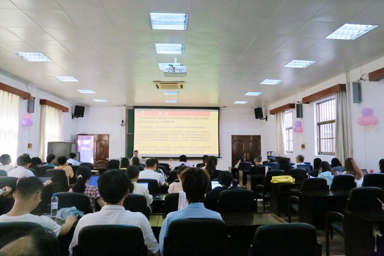 讲座伊始,聂鑫详细跟大家介绍了肖顺平的工作履历及主要成就,并对他的到来表示热烈欢迎。随后,肖顺平讲述了古今中外的实践故事,以我国“民主”的发展历程作为报告的开篇。
