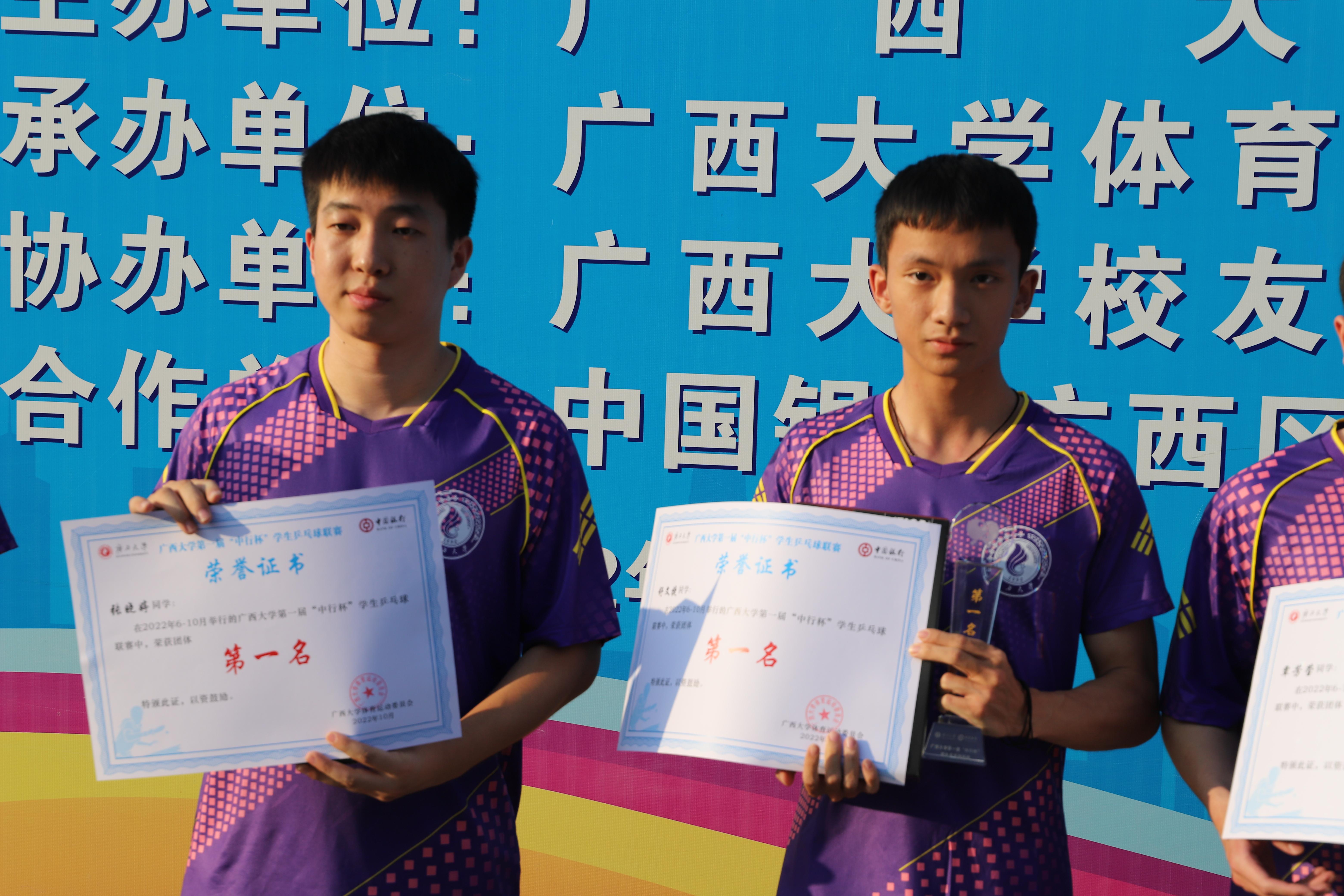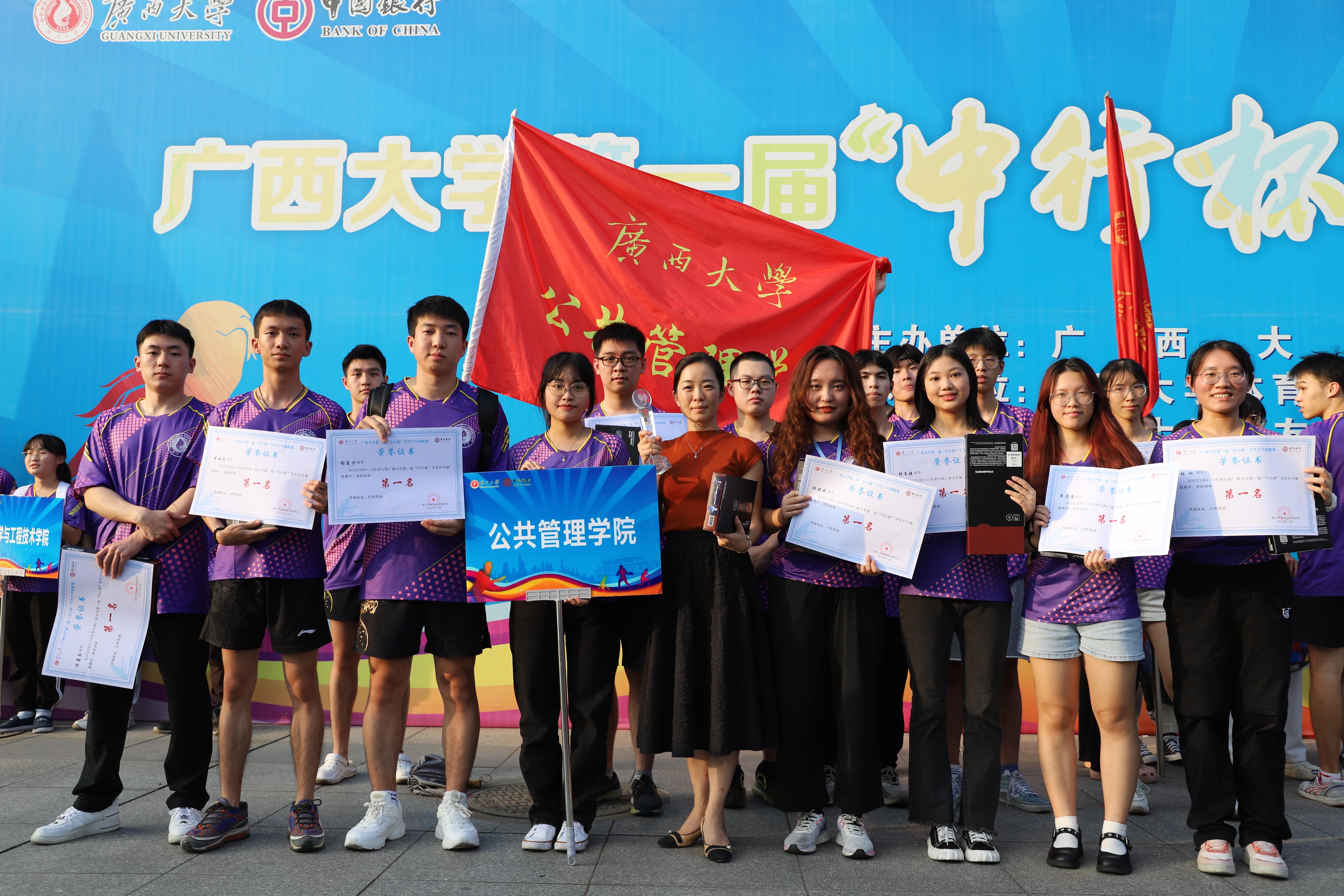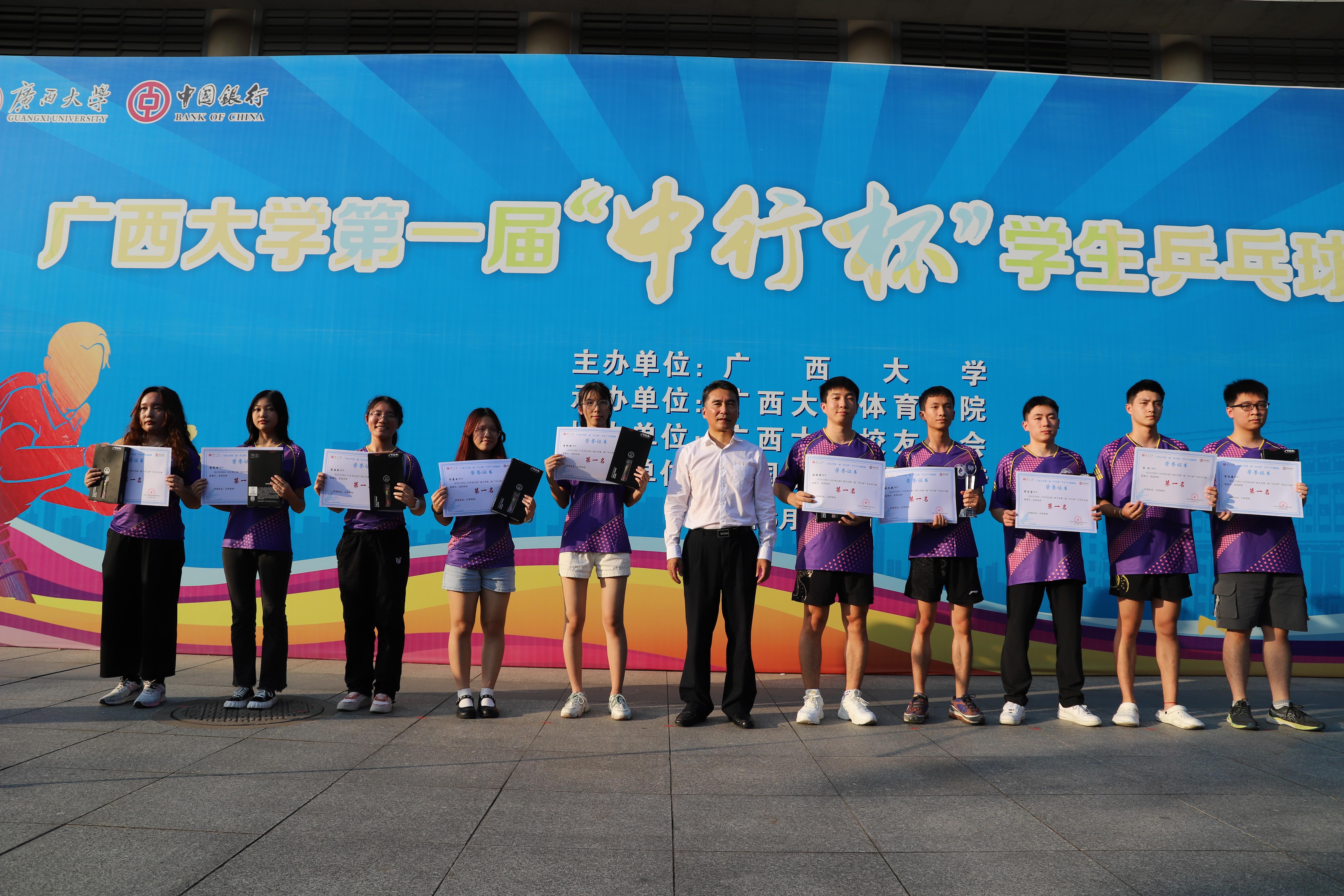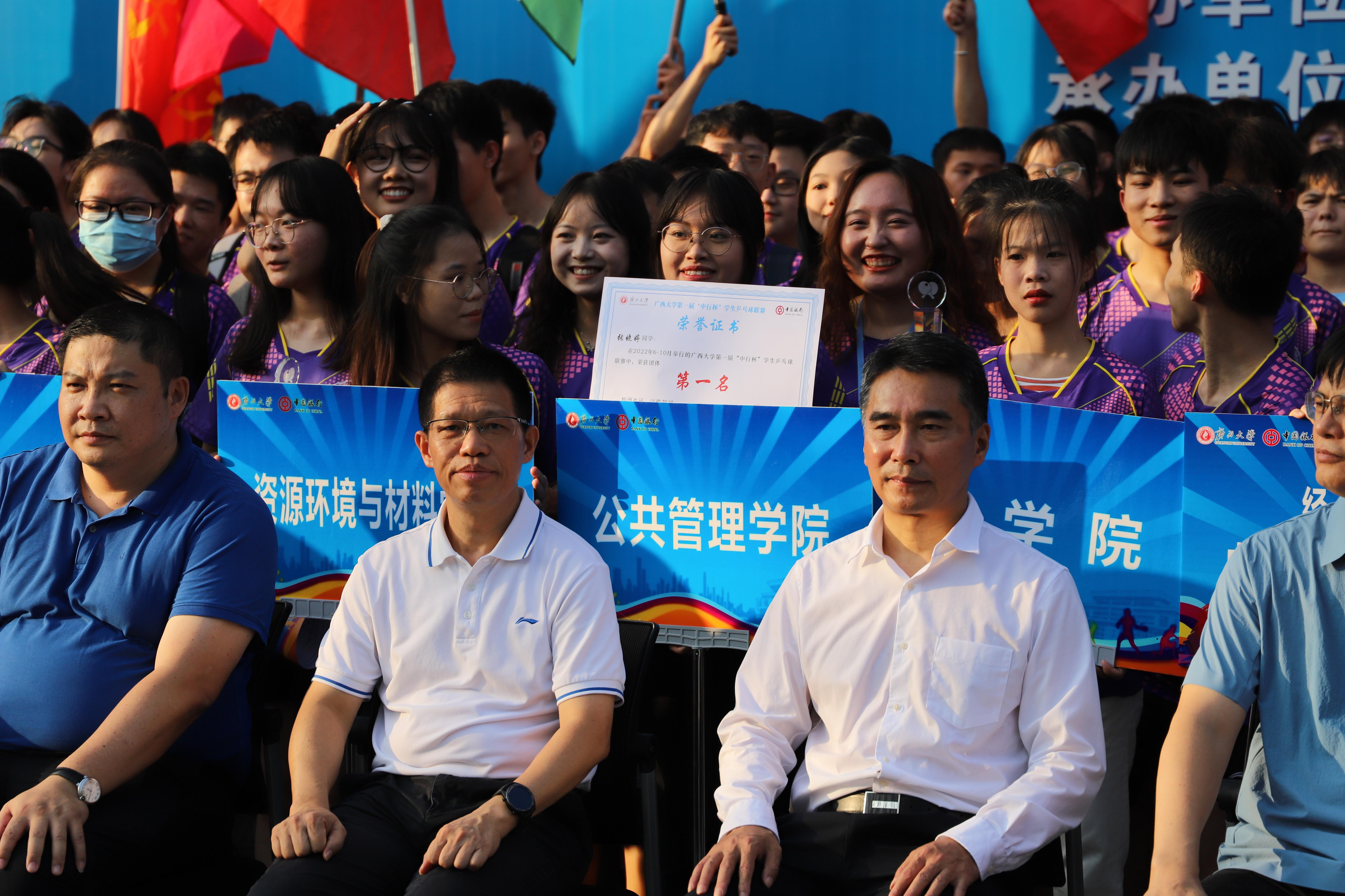 10月27日下午,太阳城网址 第一届“中行杯”学生乒乓球联赛于西综合体育馆胜利闭幕,自治区政协副主席、校党委常委王乃学书记,校体委主席罗延荣副校长,校党委常委、总会计师宁旭初出席闭幕式。太阳城网址 学生代表队在此次乒乓球联赛中获得“混合团体总分第一名”的好成绩。