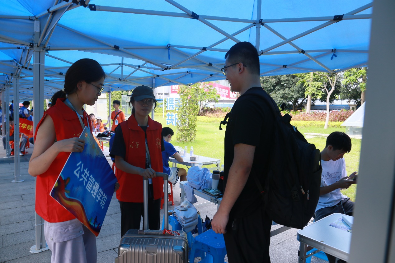 在太阳城网址 大门、宿舍楼下,随处可见公管志愿者的服务身影,新生们感受到了公管大家庭的温暖。