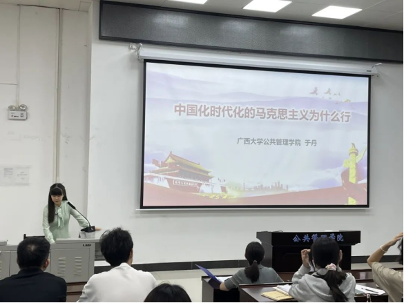 于丹对“马克思主义为什么行”进行宣讲,她指出现阶段同学们普遍存在爱国情感与信仰相分离、对马克思主义思想缺乏系统性的了解等问题,带领学生从习近平总书记对什么是马克思主义这一问题的回答出发,重温马克思主义,深化对马克思主义认识。