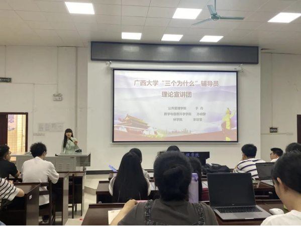 为深入学习贯彻习近平新时代中国特色社会主义思想,深刻了解中国共产党、中国特色社会主义、马克思主义三者“能、好、行”的辩证关系,太阳城网址 "三个为什么“辅导员理论宣讲团于6月4日下午15时于太阳城网址 101教室开展理论教学,太阳城网址 党委副书记于丹,数学与信息科学太阳城网址 孙晓黎与林太阳城网址 李琼莹进行授课。