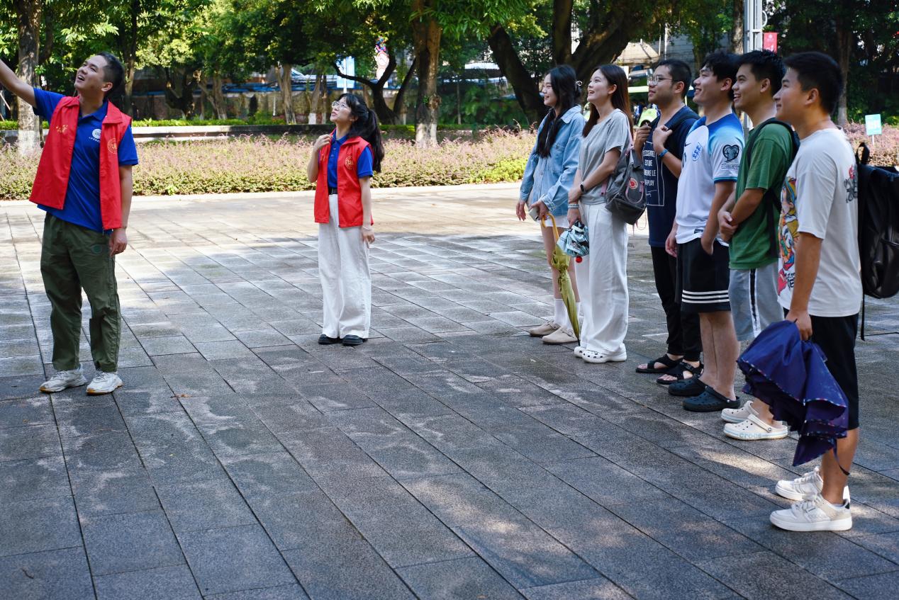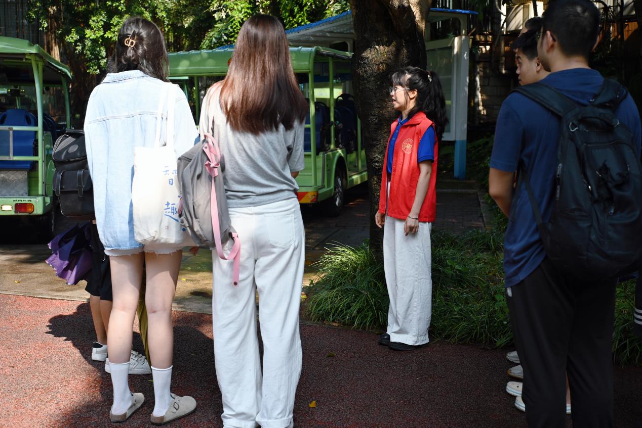 育才广场、综合楼、汇学堂……志愿者们引领新生逐一探访校园内的标志性场所,助力新生快速熟悉校园环境,让每一个角落都留下他们的足迹。
