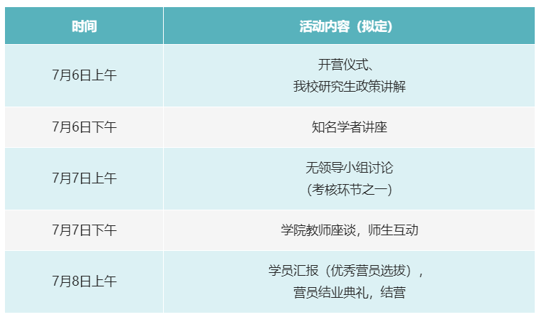 夏令营规模100人左右,招生对象为全国“985”、“211”工程高校或省属管理类重点学科且具有研究生推免资格高校的优秀本科三年级在校生;