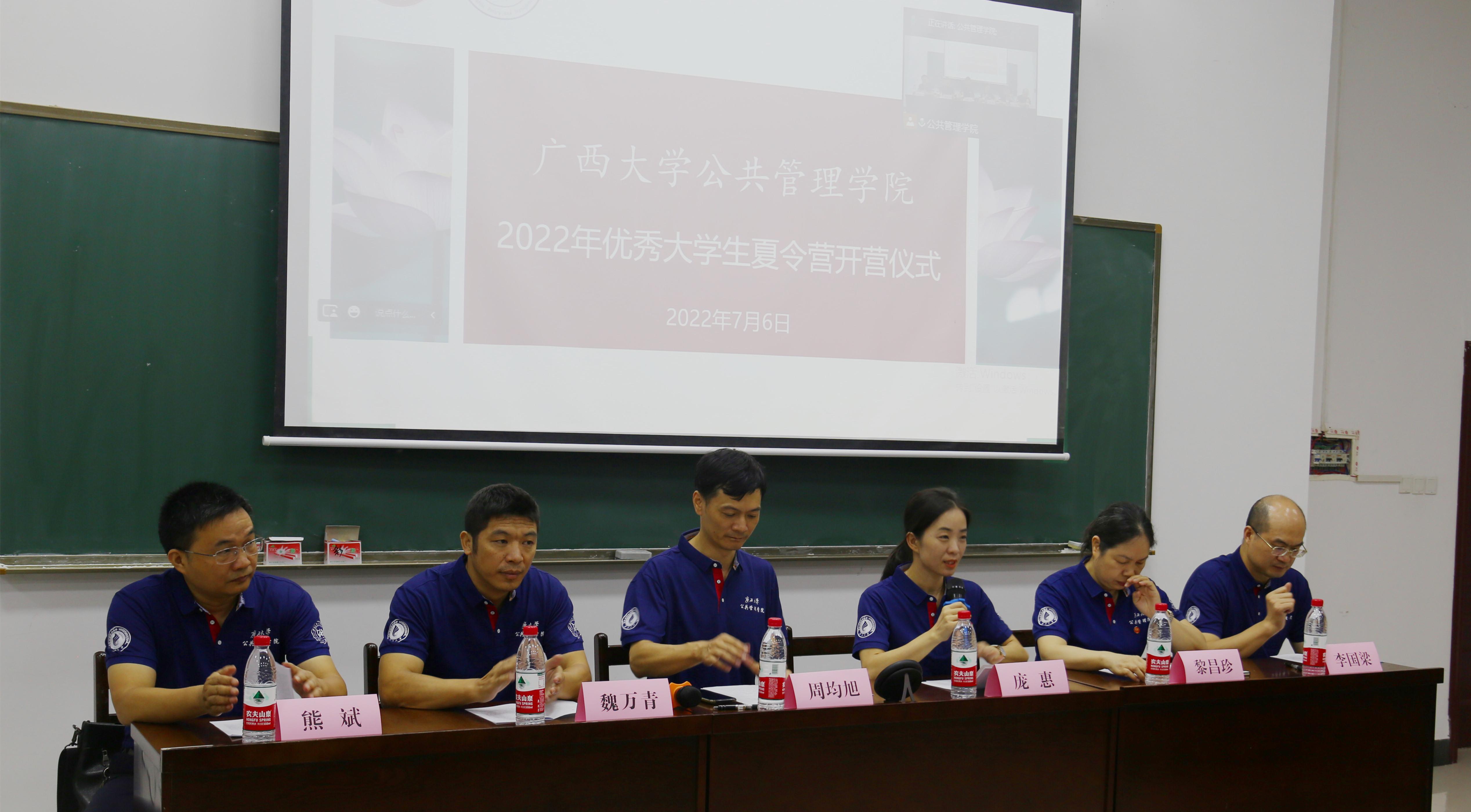 7月6日上午,太阳城网址 2022年优秀大学生“博学”夏令营正式拉开帷幕。太阳城网址 党委副书记庞惠、副院长周均旭、副院长魏万青、公共管理系主任黎昌珍、MPA教育中心副主任熊斌和公共管理系副主任李国梁出席了本次开营仪式。本次夏令营采取线下线上相结合的方式进行,20名本校营员在会议现场参加开营仪式,53名外校营员通过腾讯会议线上参加。