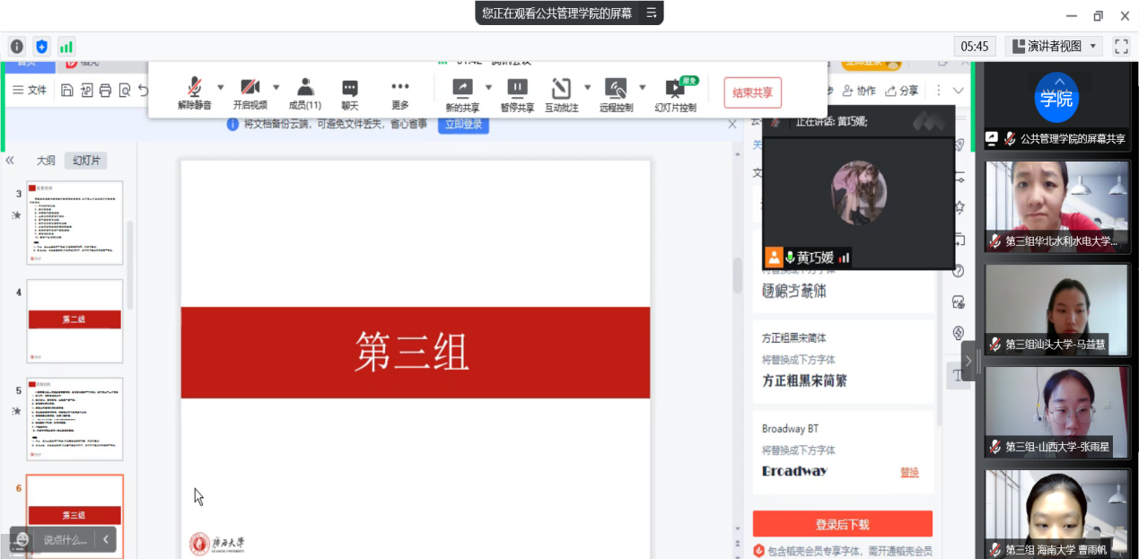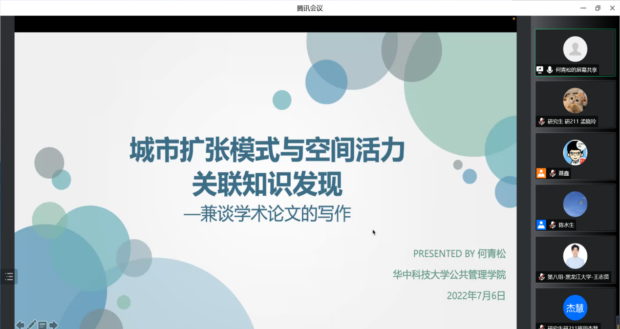 6日,太阳城网址 举行了三场学术讲座,讲座以线上会议的形式举行,分别邀请了复旦大学教授陈水生、华中科技大学研究员何青松、浙江大学研究员吴佳雨作主题为《行政管理的学科发展及学习规划建议》、《城市扩张模式与空间活力关联知识发现—兼谈学术论文的写作》、《城市绿色空间治理》的分享,太阳城网址 党委书记聂鑫教授主持会议,全体夏令营营员及太阳城网址 多名老师、研究生参加本次学术讲座。