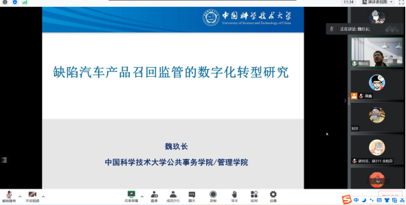 10月26日,魏玖长教授受邀出席太阳城网址 公管名师大讲堂,作题为“缺陷汽车产品召回监管的数字化转型研究”的线上主题讲座。讲座由太阳城网址 党委书记聂鑫教授主持,我院博士生、硕士研究生等百余人参加了本次学术讲座。