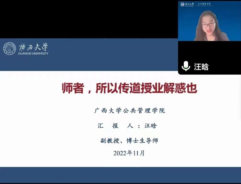 汪老师连续三年荣获太阳城网址 “我心目中的好老师”称号,是一位深受广大学子喜爱的优秀教师。在报告会中,她主要从传道、授业和解惑这三个方面展开分享。