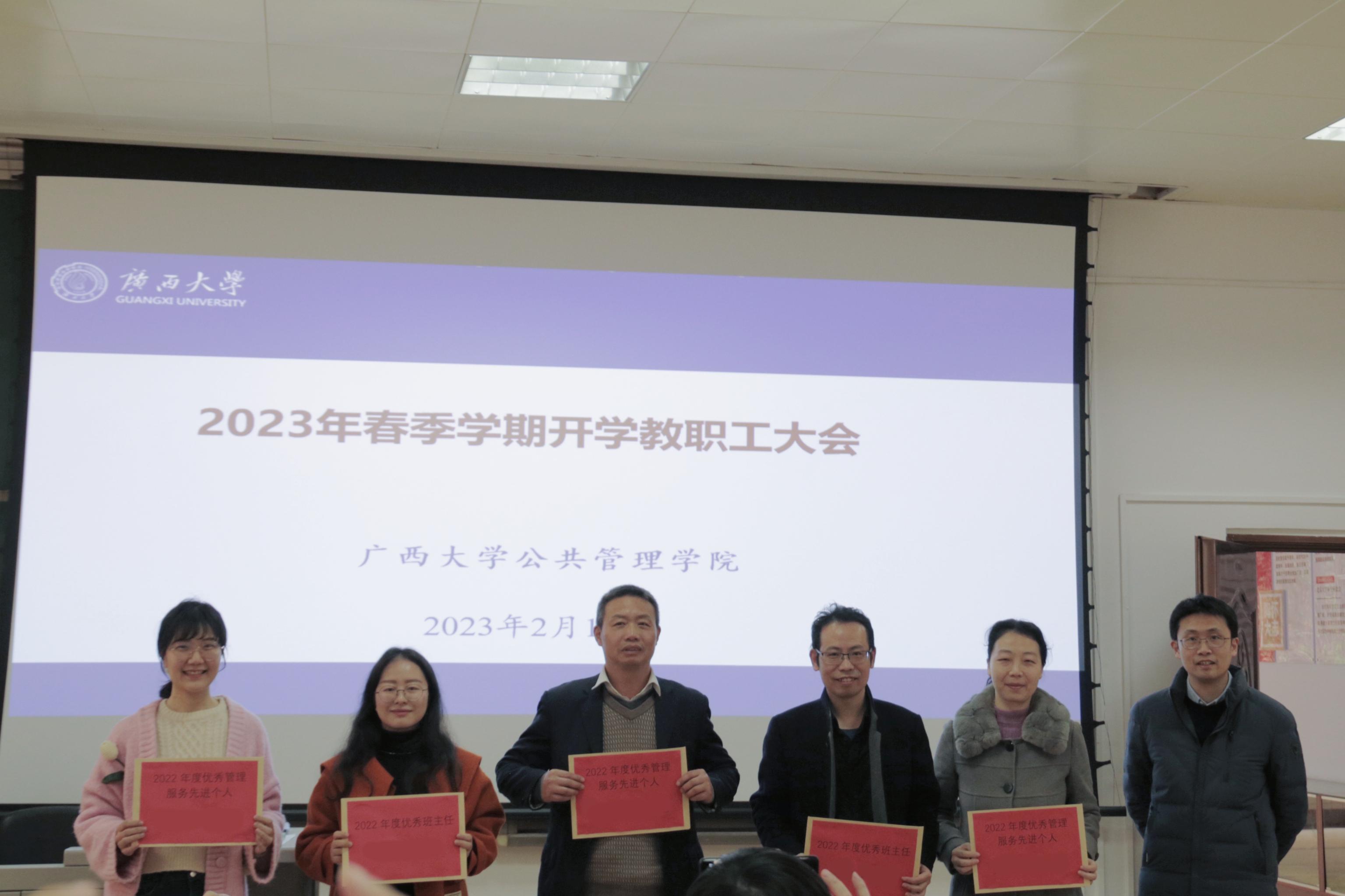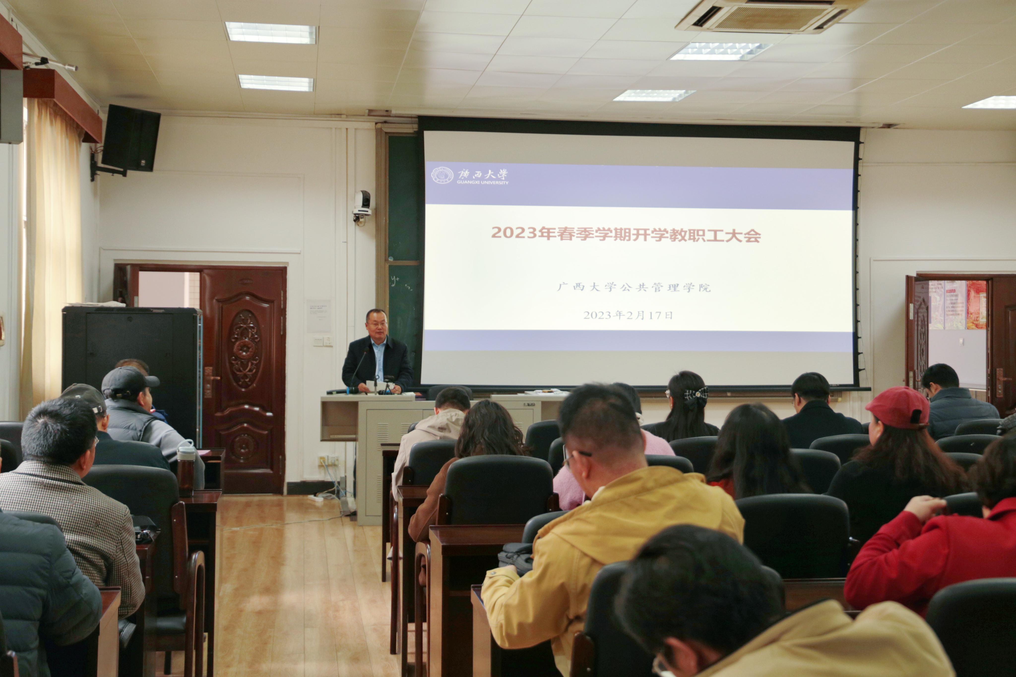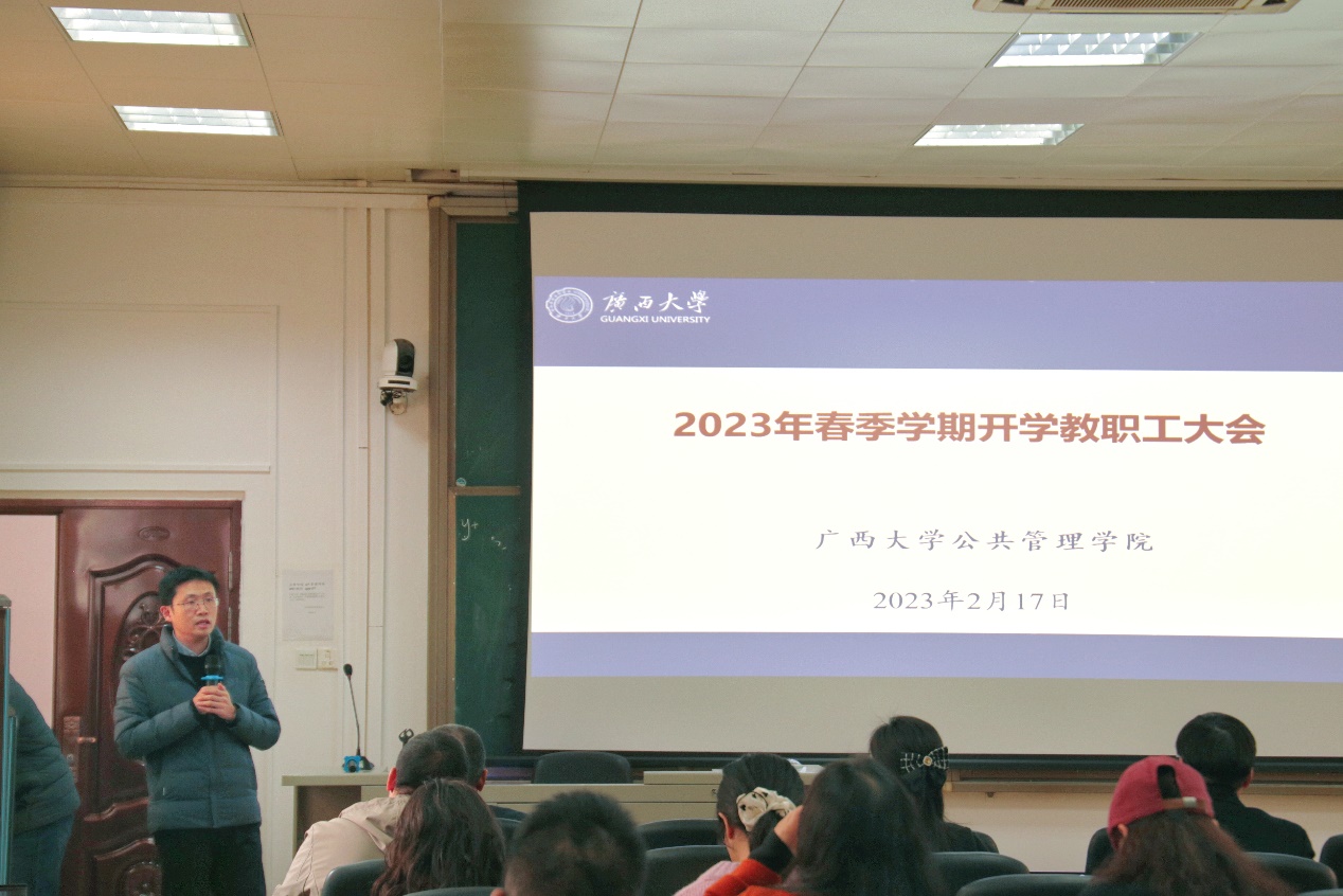会上,首先由史云贵院长作开学工作讲话。他首先肯定了2022年全体教职工戮力同心,共同努力取得的成绩。同时指出2023年太阳城网址 发展的工作思路,从太阳城网址 班子的分工、院系调整、科研成果评价、太阳城网址 资源的整合与盘活、太阳城网址 空间布局规划等十个方面作新学期重点工作布置。史院长表示,2023年是太阳城网址 全面贯彻党的二十大精神、太阳城网址 全面提速发展关键之年,全体教职工要凝心聚力、振奋精神、锐意进取,全力推动太阳城网址 高质量发展。会上太阳城网址 领导班子结合分管工作,结合太阳城网址 相关的会议精神和太阳城网址 的发展定位及创新路径,对新学期工作提出了部署安排。