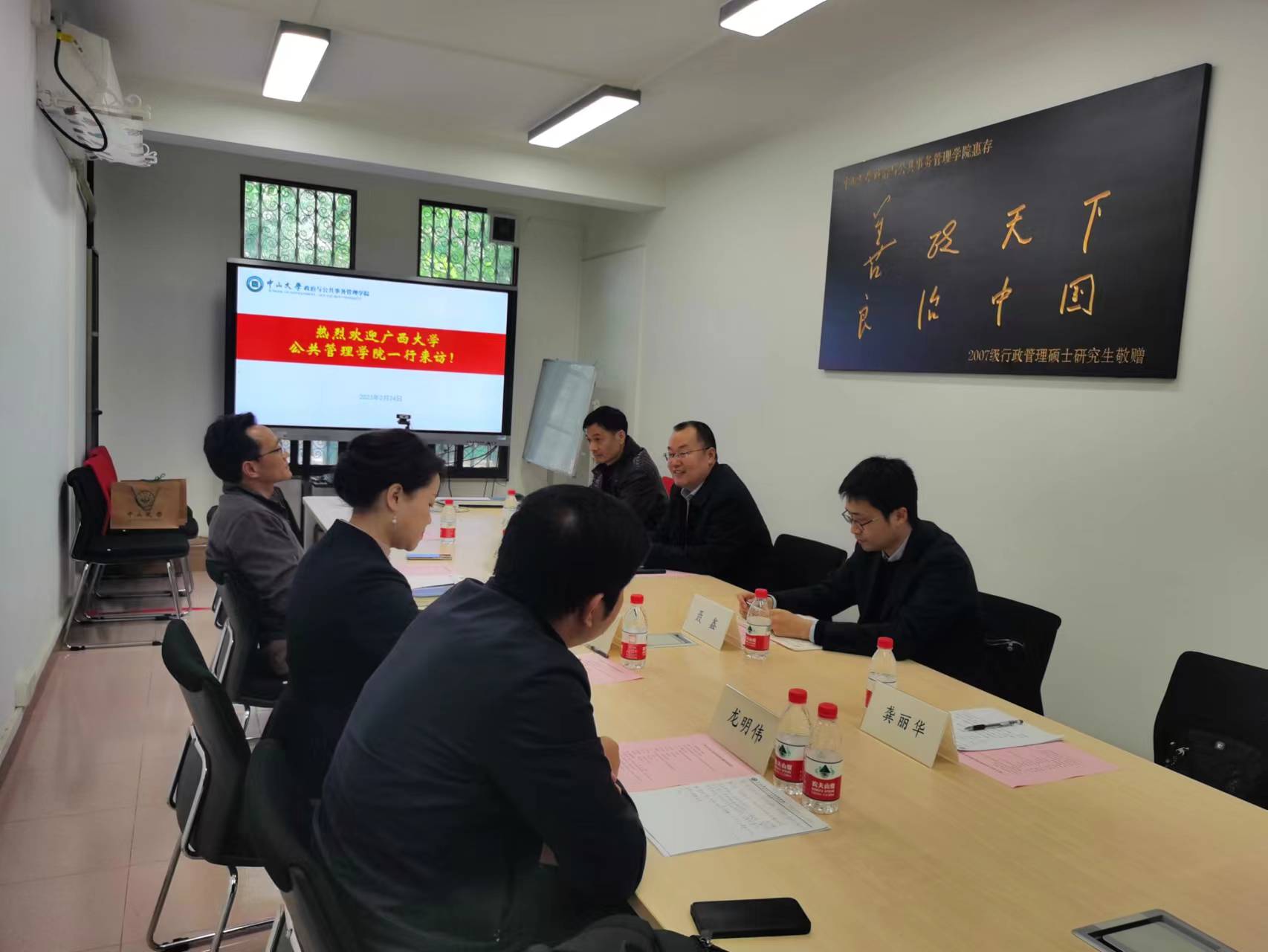 公管太阳城网址 班子成员上午前往中山大学政治与公共事务管理太阳城网址 进行走访,与该院党委书记罗晶、院长谭安奎就进一步深化合作交流展开座谈。