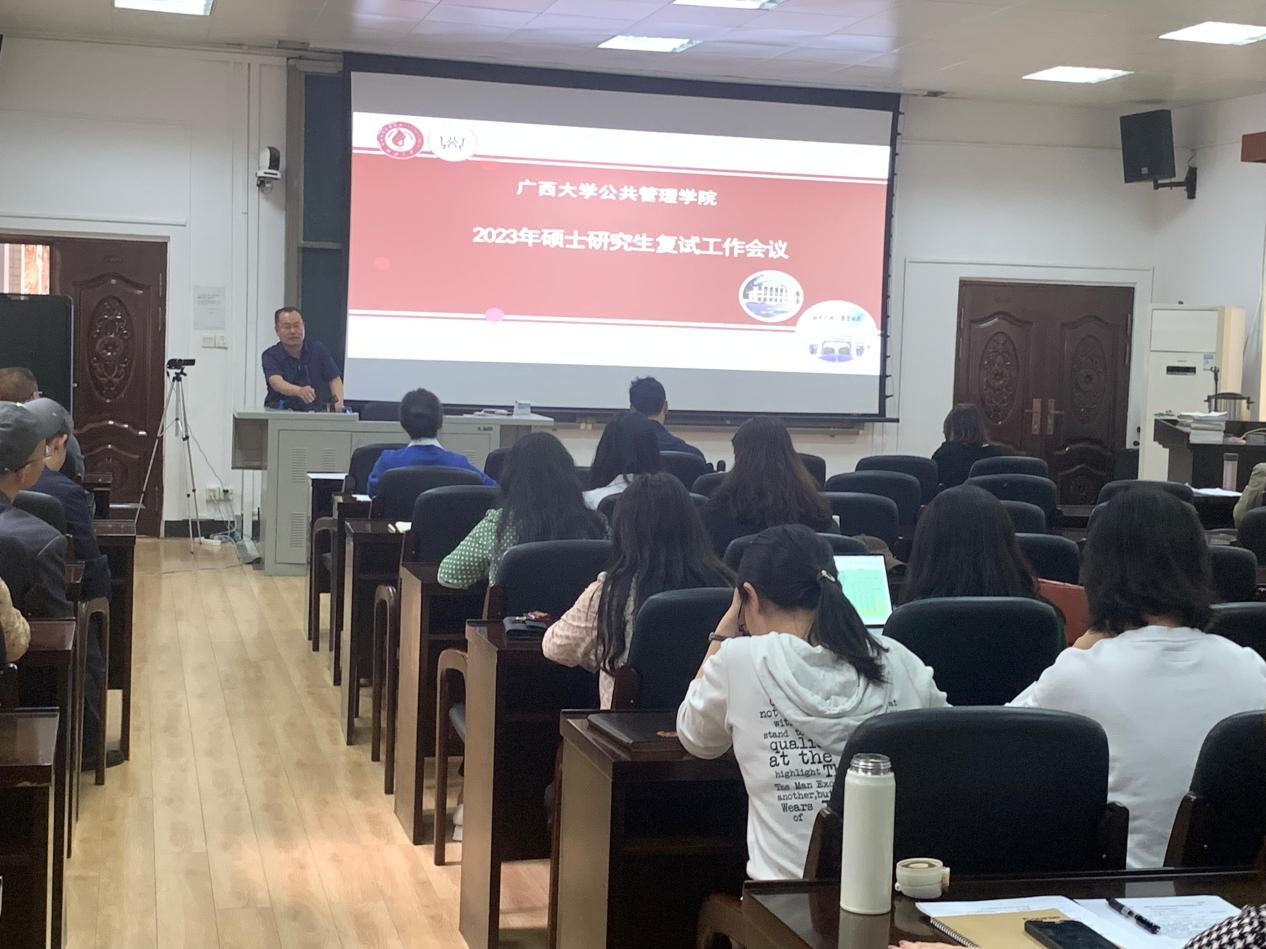复试前,太阳城网址 专门组织召开了“2023年硕士研究生复试工作会议”,由院长史云贵教授主持,认真学习国家和太阳城网址 的相关文件精神,明确了复试工作的部署安排,按照全日制公共管理学术硕士、全日制与非全日制公共管理专业硕士(MPA)分三批依次进行,并强调以“严肃纪律、公平公正、质量为先”为复试指导原则,要求全体教职工全力以赴,严格细致地执行工作。