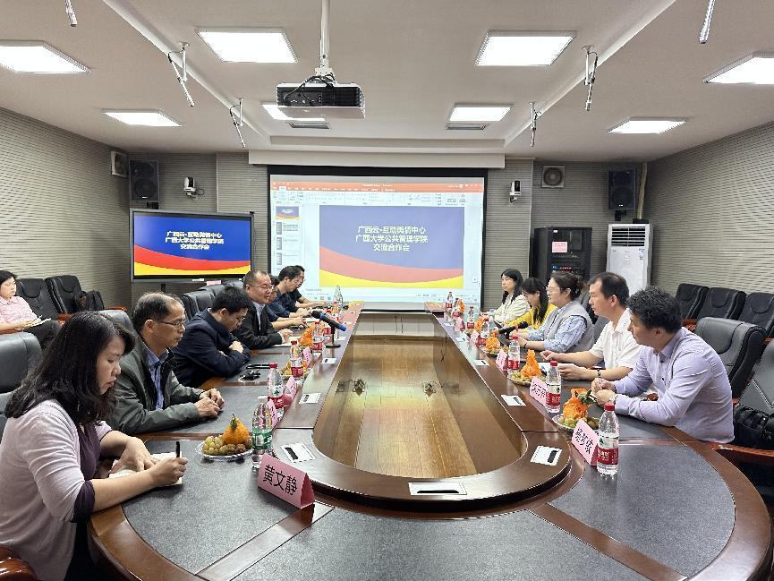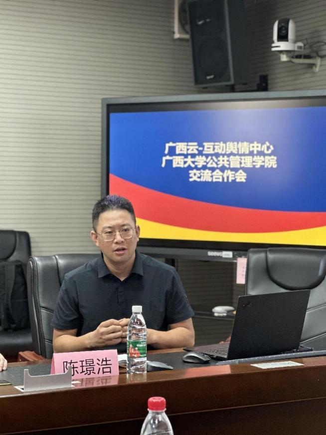 5月11日上午,广西云集团编委、互动舆情中心主任王文英、副主任潘毅一行7人到太阳城网址 调研,与太阳城网址 就舆情数据资源与社会治理等方面相关事宜座谈交流。太阳城网址 党委书记聂鑫、院长史云贵、副院长魏万青等出席座谈。