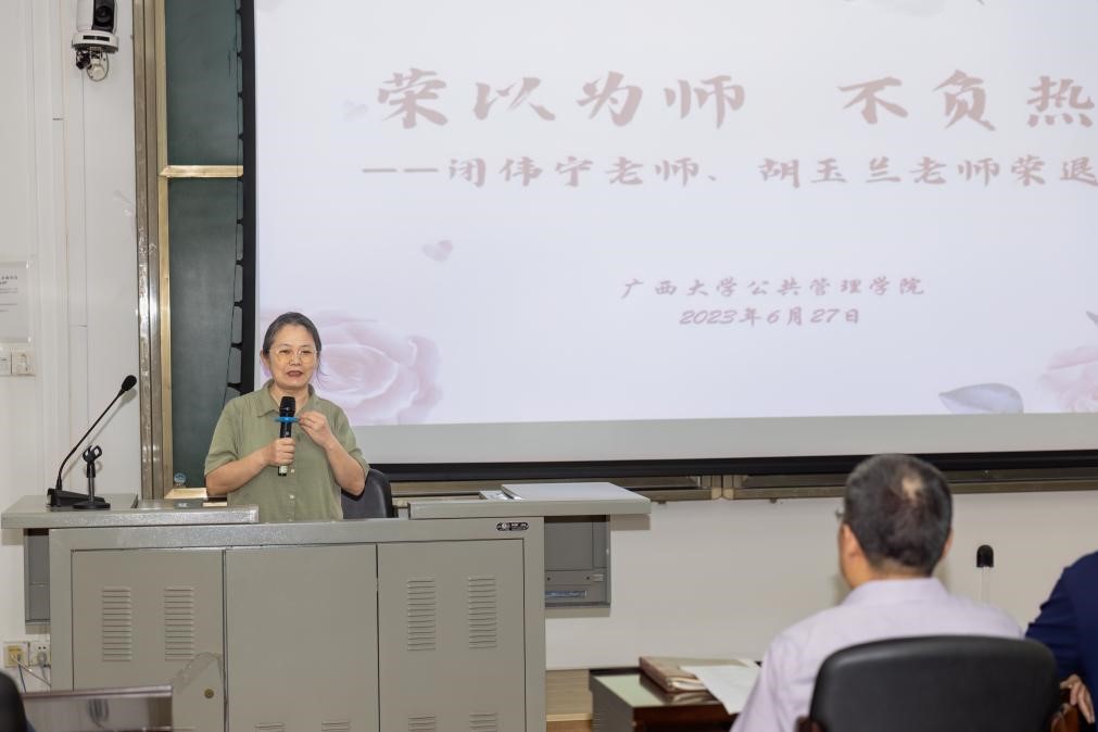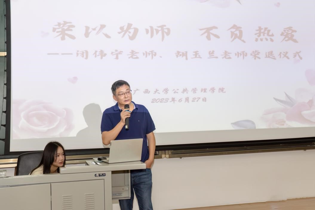 与学生的不解情缘。樊国华、覃伟华老师则代表其他老师送上对两位老师的祝福,他们表示将传承前辈同事爱岗敬业、无私奉献的精神,牢记教师的初心使命,做有理想信念、有道德情操、有扎实学识、有仁爱之心的“四有”好老师,当好学生的“引路人”。