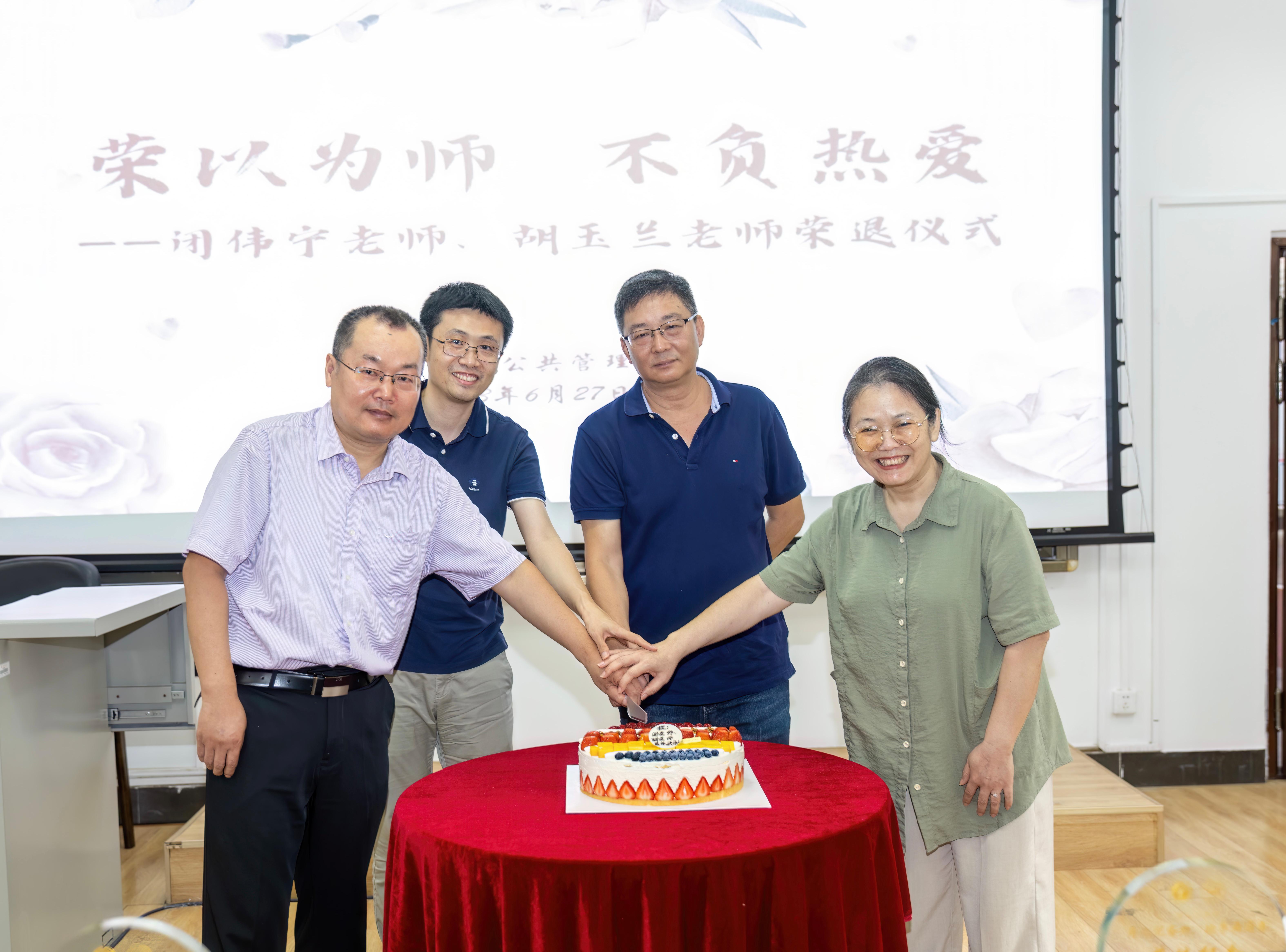 在107报告厅为2023年度退休的闭伟宁、胡玉兰2位教师举行隆重的荣退仪式。全院教职工和部分学生代表参加仪式。