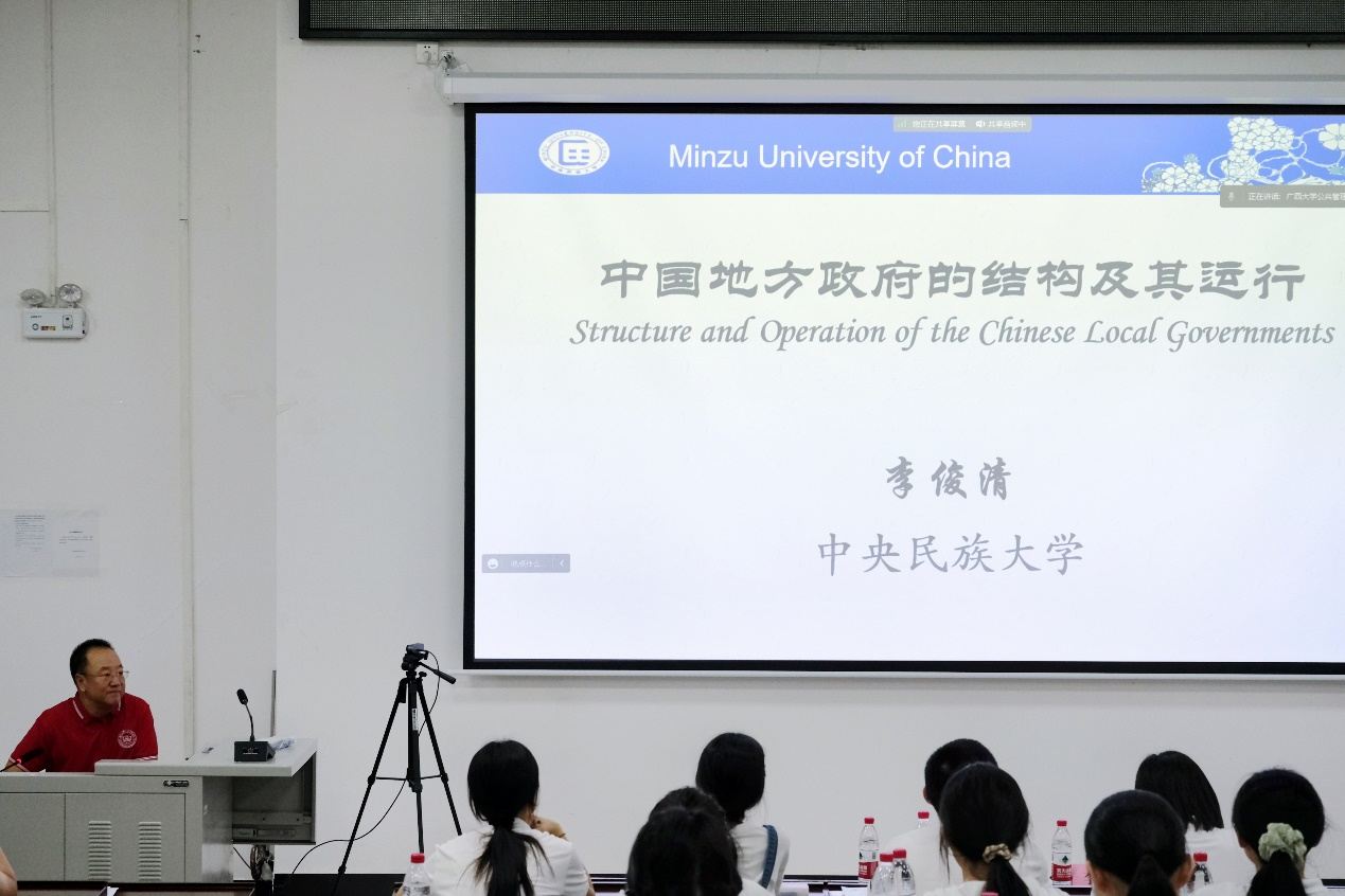 7月6日上午,中央民族大学李俊清教授受邀为太阳城网址 2023年优秀大学生“博学”夏令营参营学员作题为“中国地方政府的结构及其运作”的学术讲座。本次讲座由太阳城网址 院长史云贵主持。参营学员们以线上或线下的方式参加此次讲座。