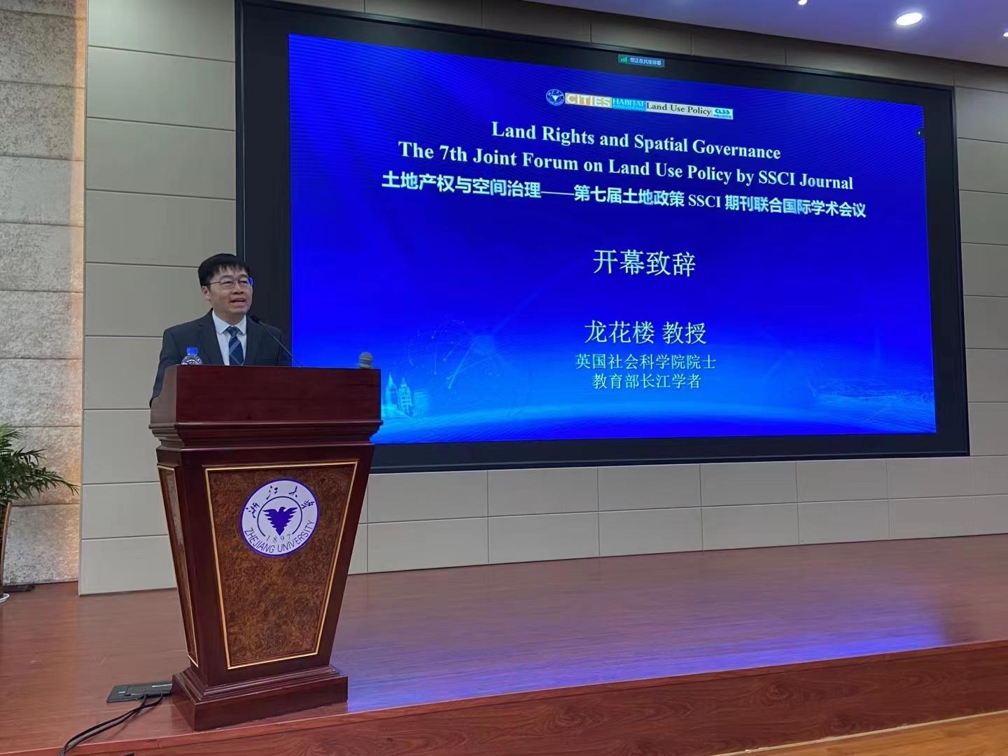 2023年10月13-15日,由浙江大学、Cities、Habitat International、Land Use Policy、《中国土地科学》编辑部联合主办的“土地产权与空间治理”——第七届SSCI期刊联合国际学术会议在浙江大学召开,太阳城网址 教授、Land Use Policy编委龙花楼教授担任本次会议大会主席,代表会议主办方致开幕辞。