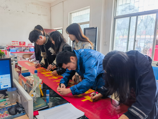 协助农村社区活动制作横幅 |