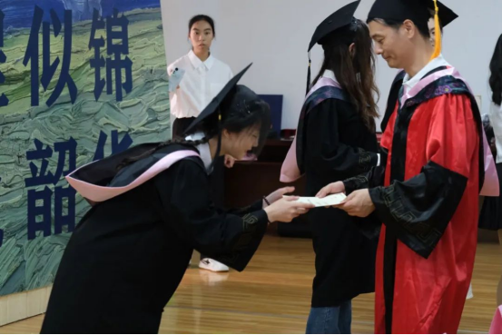 进入学位授予仪式环节,覃志敏宣读学位授予决定后,本科生、学术型硕士及博士生毕业生按顺序依次上台接受学位授予。院学位委员会成员为获得学位的毕业生行拨穗礼并授予学位证书、合影留念,毕业班班主任、辅导员老师为每一位毕业生送上忠诚祝福。