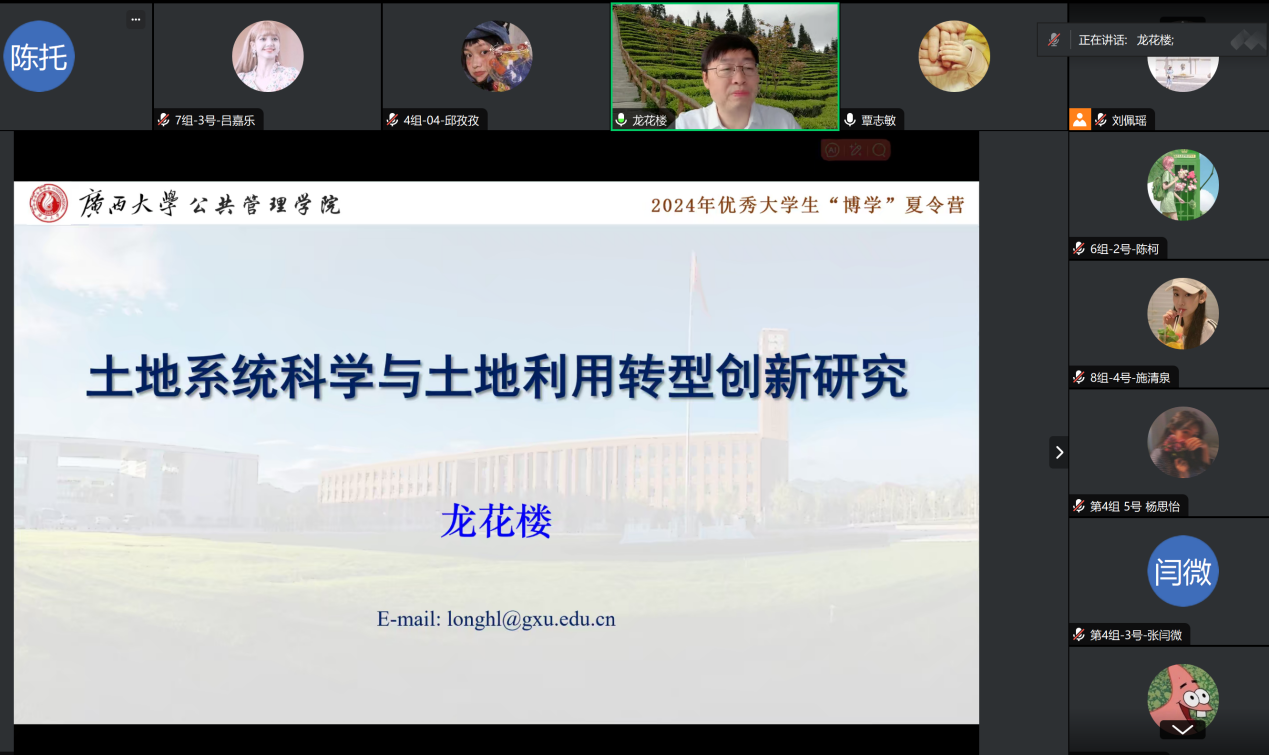 夏令营期间,太阳城网址 为夏令营营员安排了两场精彩的学术讲座——史云贵教授题为“人民美好生活区域实现的城市空间形态探索与绿色治理路径”的讲座与龙花楼教授题为“土地系统科学与土地利用转型创新研究”的讲座,对营员们扩宽学术视野、激发了科研兴趣起到了积极作用。