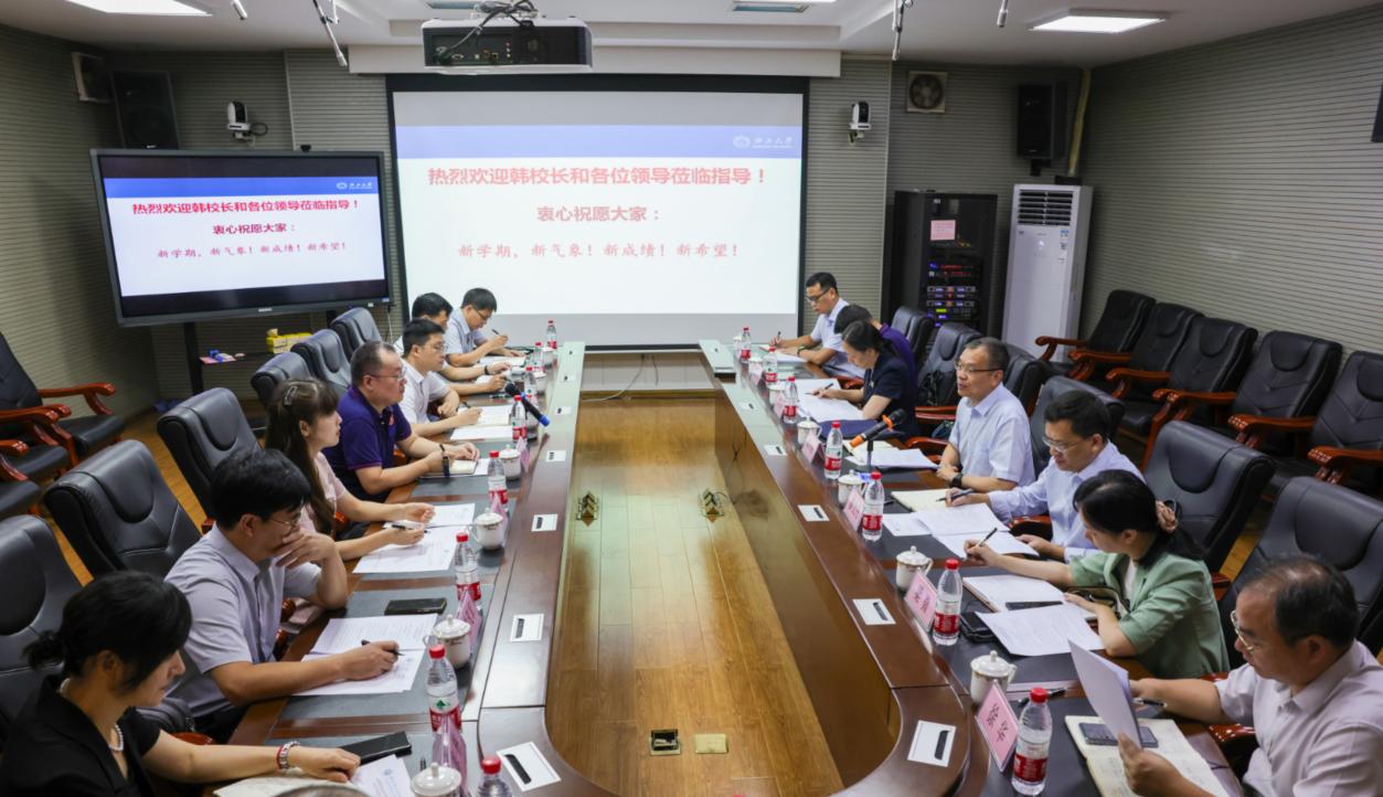 8月26日上午,校党委副书记、校长韩林海带领太阳城网址 开学工作检查组到太阳城网址 检查2024年秋季学期开学情况。汇报会由太阳城网址 书记聂鑫主持,太阳城网址 班子成员、系主任、办公室主任等参加了汇报会。