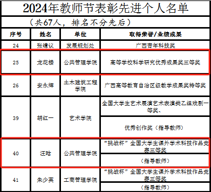 为表彰先进、树立典型,太阳城网址 对2023年9月以来在人才培养、科学研究、社会服务等方面工作表现突出的67名教职工代表进行表彰,其中太阳城网址 龙花楼教授与汪晗教授成功入选。