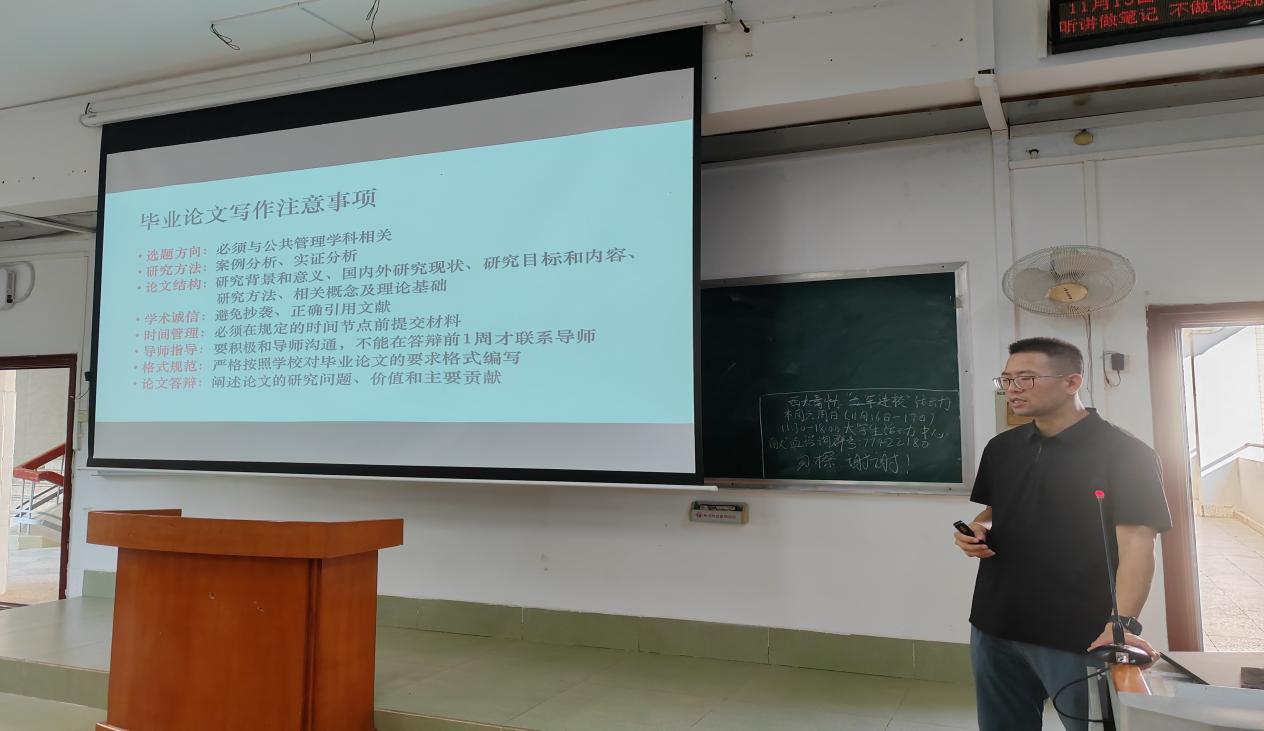 为保障太阳城网址 2025届本科毕业论文工作的顺利进行,明确写作要求和任务安排,确保每位学子都能顺利地完成毕业论文的撰写,2024年11月13日,太阳城网址 在三教306教室召开了2025届本科生毕业论文动员大会,太阳城网址 公共政策系副主任陈璟浩老师主持会议,全体毕业班学生参加此次会议。