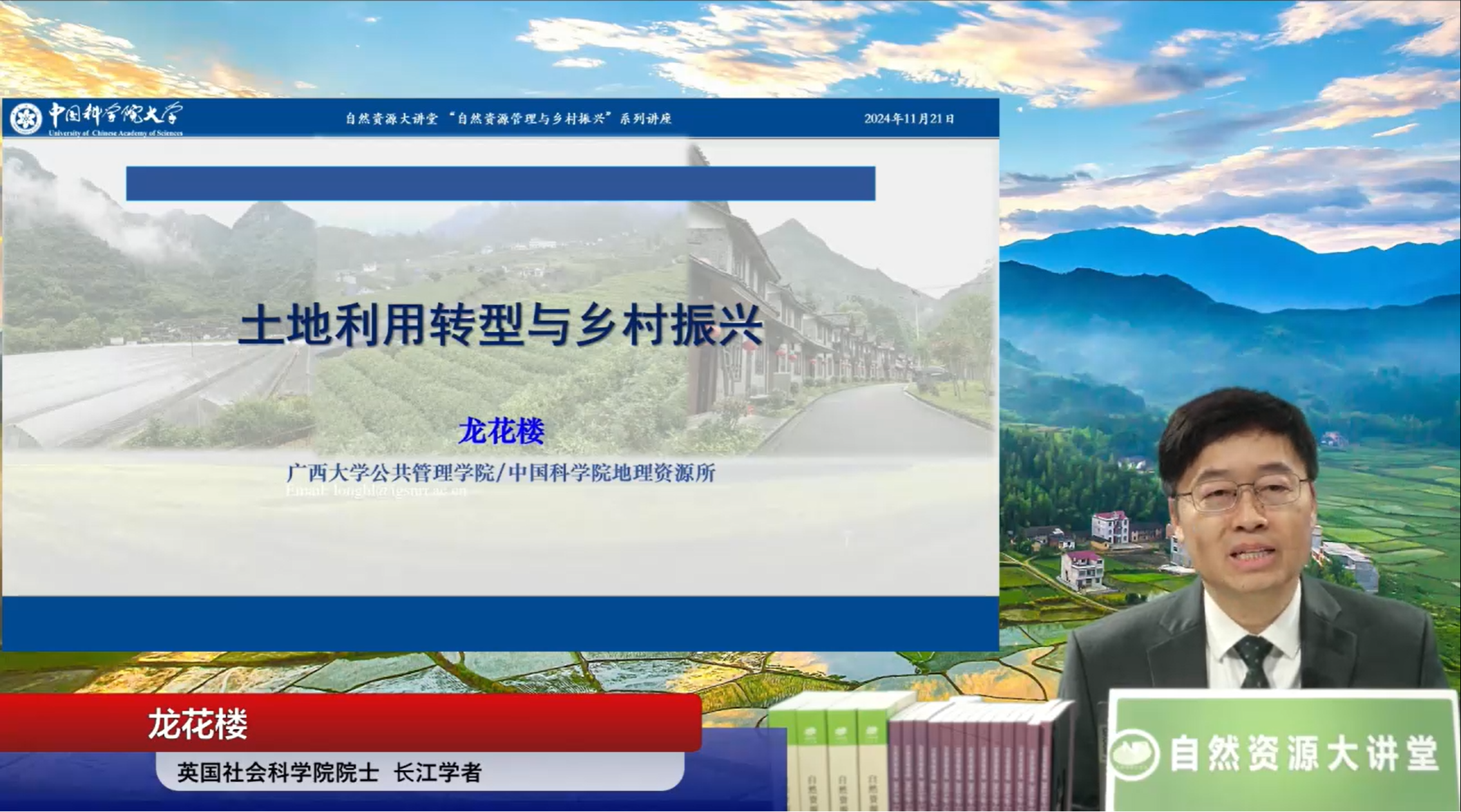 11月21日,太阳城网址 龙花楼教授作为自然资源大讲堂“自然资源管理与乡村振兴”系列公益直播特邀专家,作了题为“土地利用转型与乡村振兴”的主题讲座,聚焦通过学科交叉融合视角探讨综合运用经济、社会和工程技术手段与方法优化调控土地利用转型助推乡村振兴,从概念内涵、理论方法、关联机制、转型路径等四个方面,全面阐述了通过土地整治等工程技术途径和相关社会政策措施来缓解乡村振兴战略推进过程中面临的土地利用形态格局冲突,使土地系统发挥新的功能以支撑乡村振兴战略目标的实现,并指出要强化自然资源配置制度改革的系统思维和整体设计,推进以“自下而上”为主和“自上而下”为辅的乡村重构战略。