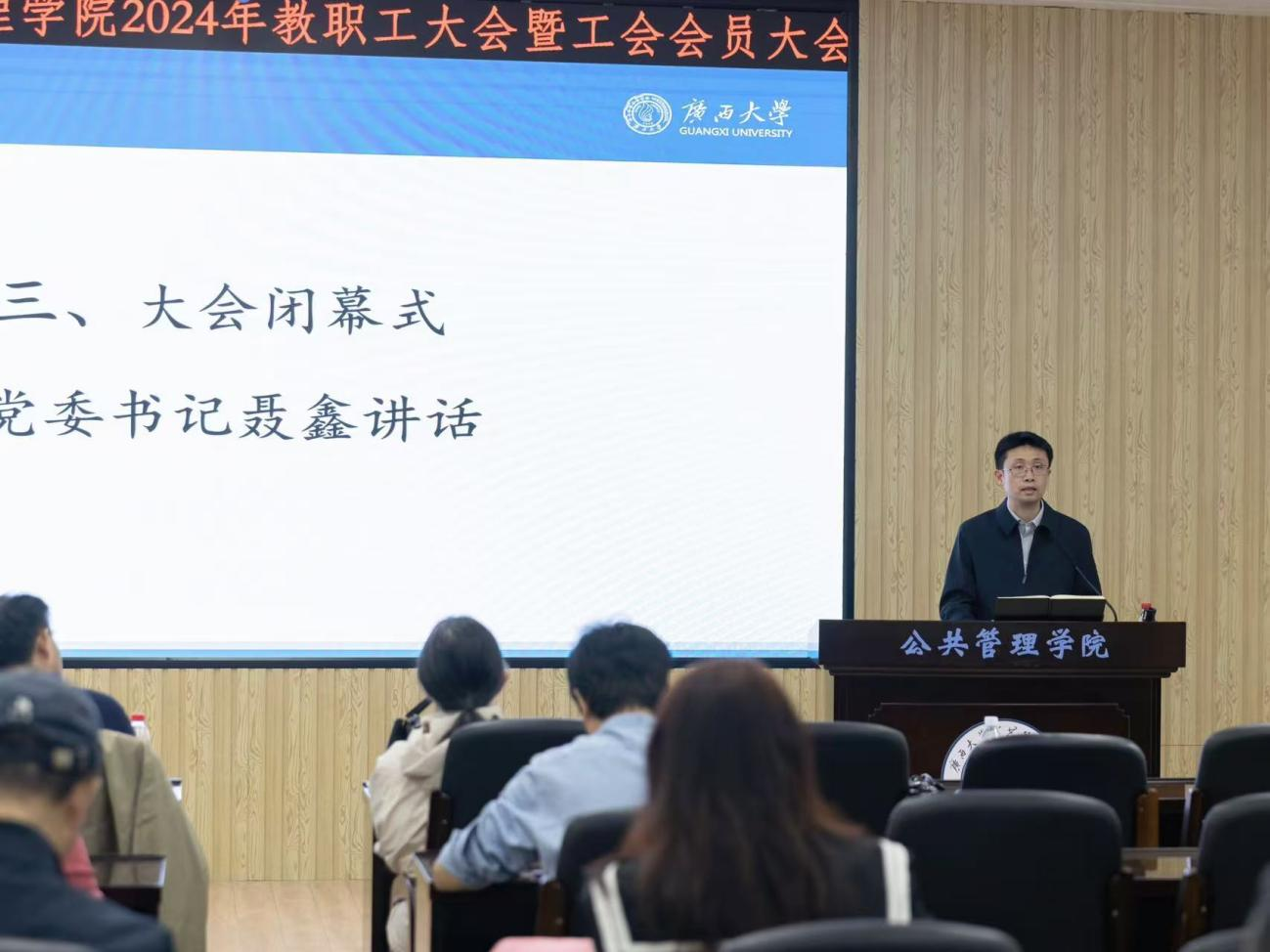 大会闭幕式上,太阳城网址 党委书记聂鑫指出,在过去的一年,太阳城网址 科研成果、学生培养、师资力量都有了崭新的突破,每一项成绩的取得都与每一位公管人的拼搏奋斗是分不开的,对此他代表太阳城网址 班子对大家的支持表示衷心的感谢。但随着新时期的到来,太阳城网址 面临新的挑战,这对太阳城网址 未来的发展也提出了新的要求,我们在一流课程建设、人才培育建设与师资队伍建设上还有较大提升空间,未来将继续加强。他号召全体教职员工,踔厉奋发,敦笃力行,在太阳城网址 高质量发展的道路上贡献自己的力量。