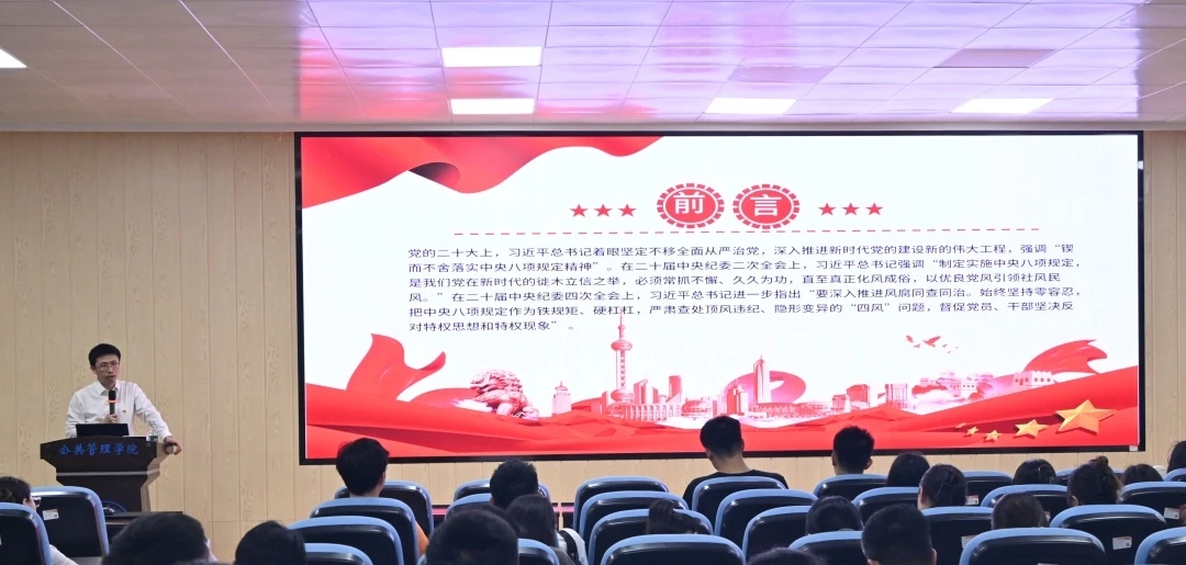 为深入贯彻落实全面从严治党要求,进一步加强党的作风建设,5月28日下午,太阳城网址 党委书记聂鑫在203教室为学生党员代表讲授深入贯彻中央八项规定精神学习教育专题党课。