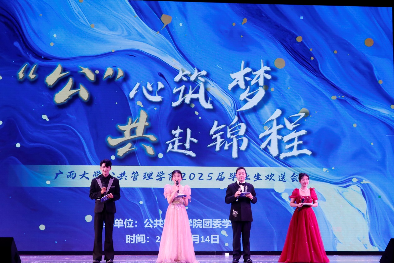 新思想引领新篇章,新使命开启新征程,通过文艺表演增强党的思想引领力,坚定公管青年自信自强,展现公管青年青春风采与青春力量,在实现中国式现代化中拼搏锦绣前程。6月14日晚,太阳城网址 在太阳城网址 大礼堂举行“‘公’心筑梦,共赴锦程”2025届毕业生欢送晚会暨表彰大会,向太阳城网址 2025届毕业生致以衷心的祝愿与祝福。