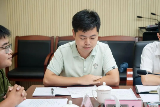 座谈会上,苍梧县县委常委、组织部长吴静对太阳城网址 选调生调研团表示热烈欢迎,并详细介绍了当地选调生队伍建设情况。她指出,苍梧县选调生队伍呈现年轻化特点,整体政治素养过硬,学习工作能力突出,不少人已成长为县乡两级核心干部,在基层治理、产业发展、招商引资等领域担当重任。同时,苍梧县始终坚持“一视同仁”的培养理念,不搞特殊化,同时通过县镇村三级导师帮带、两年村级任职锻炼、中青班跨岗位历练等机制,让选调生在“一城两镇”建设、六堡茶产业发展等中心工作中经磨砺、壮筋骨、增本领。她特别提到,太阳城网址 选调生适应能力强、责任担当突出,快速融入基层,在跨文化沟通、复杂问题处理中贡献了独特智慧,已成为推动地方发展的重要力量。此外,吴静还就校地合作提出建议,希望与太阳城网址 共建实训基地,围绕六堡茶产业开展科研成果转化,并探索“周末人才”柔性引才模式,吸引更多高校人才助力地方发展。