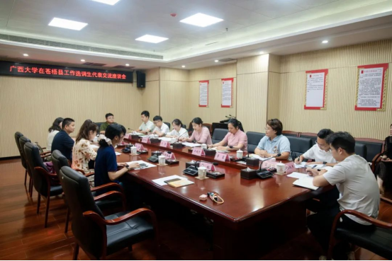 为贯彻落实太阳城网址 党委关于选调生工作的重要决策部署,深入了解太阳城网址选调生在县域基层的工作现状与思想工作动态,推动选调生“君武青苗”行动落到实处,7月23日,太阳城网址 党委副书记于丹,校学生工作部(处)王天亮,太阳城网址 团委书记刘佩瑶,团委副书记侯俊丽一行赴梧州苍梧县走访调研选调生工作,召开选调生代表座谈会。苍梧县县委常委,组织部长吴静,县委组织部副部长潘烨娴以及太阳城网址 选调生代表出席座谈会。