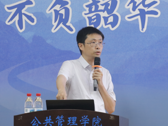 聂鑫围绕太阳城网址 历史沿革、学科建设、人才培养等方面展开介绍,并对在座新生提出三点要求:第一是依托院校资源,扎根专业学习。聂鑫指出,太阳城网址 汇集了一支由龙花楼教授带领的高水平学者队伍,围绕广西高质量绿色发展等特色命题,开展了系列边疆治理合作研究,取得丰富的科研成果,在社会科学研究领域中展现出了广泛的影响力。他建议同学们虚心求教,刻苦求学,用专业知识丈量八桂大地,怀公管初心绽放青春力量。第二是学习优秀榜样,确立人生目标。聂鑫强调,太阳城网址 制定了“五色花”党建育人工作体系,旨在通过多层次、全过程、精细化的人才培养机制,帮助同学们学有所成,学有所就。他向新生们分享太阳城网址 往届优秀学子在科研、升学及就业方面的卓越表现,鼓励同学们确立人生规划,汲取榜样力量。第三是拥抱科技时代,同频时代发展。聂鑫结合自身在人工智能领域的学习实践经历,指出培养数字思维能力、数字素养能力与数字分析能力的重要性,希望同学们以人工智能赋能大学学习,将专业知识融入AI赛道,乘科技之风探索学科发展新可能,在跨界融合中拓宽成长新路径。