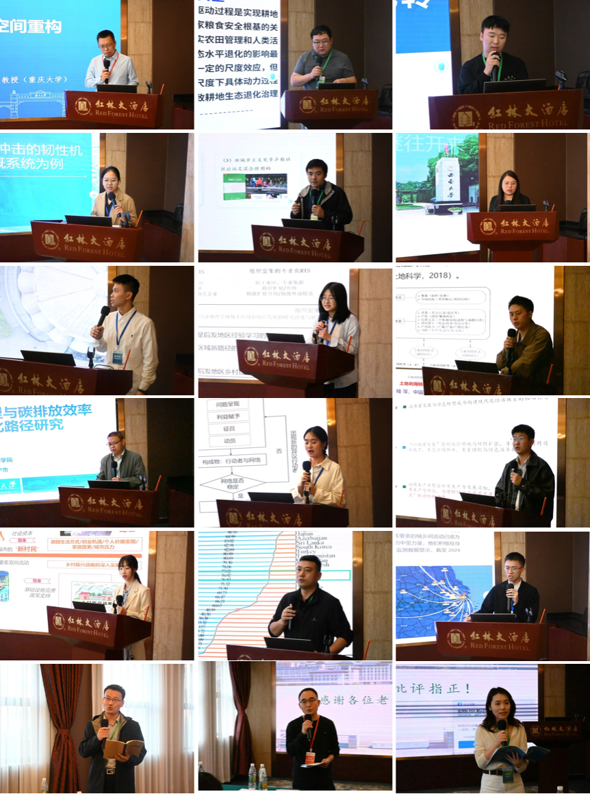 “土地利用转型与社会空间重构”分论坛在四楼贵宾三号会议厅举行,由中山大学杨忍教授与北京市农林科太阳城网址 刘玉研究员主持和点评,重庆大学马历副教授与中国科太阳城网址 地理科学与资源研究所曹智副研究员参与点评。分论坛邀请了中国科太阳城网址 地理科学与资源研究所曹智、中国地质大学(武汉)瞿诗进、西南大学周洪、中国地质大学(武汉)曾杰、成都理工大学张兰心、宁波大学王硕、太阳城网址 谭林、南京农业大学孙昊、广州大学吴大放、中国矿业大学隋虹均、浙江农林大学冯德东、太阳城网址 郭贝儿、同济大学黄龙颜、华南农业大学蔡怀滨、四川大学张子怡等学者。论坛聚焦土地利用转型的多元路径及其对社会空间结构的深远影响,围绕乡村土地利用转型、城市土地混合利用与社区韧性、森林转型、耕地扩张、城乡要素流动、乡村社会空间重构、土地利用隐性转型、土地资源配置与绿色生产效率等多个维度展开了深入的研讨和交流。