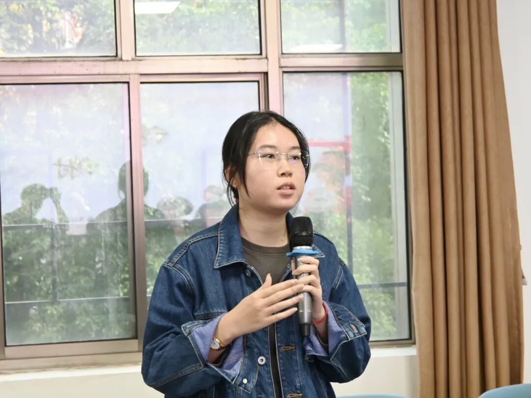 报告结束,同学为于瑮送上鲜花并表达由衷的敬意与感谢。