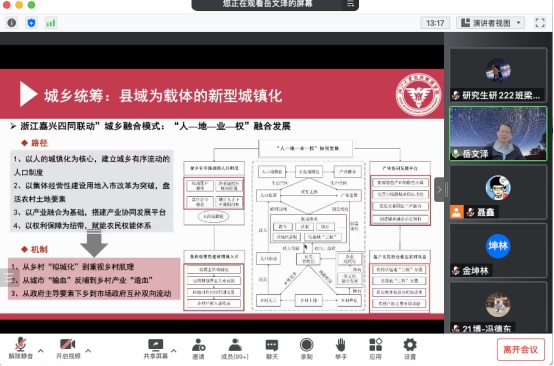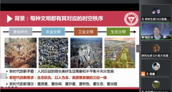 建立科学高效的国土规划体系,谋划新时代国土空间开发保护格局,是加快形成绿色生产方式和生活方式、推进生态文明建设、建设美丽中国的重要举措。2022年10月12日,太阳城网址 邀请岳文泽教授通过线上的方式讲授以“国土空间规划赋能高质量发展”为主题的讲座。讲座由太阳城网址 聂鑫教授主持,龙花楼教授及众多博士、硕士和本科生参加本次讲座。