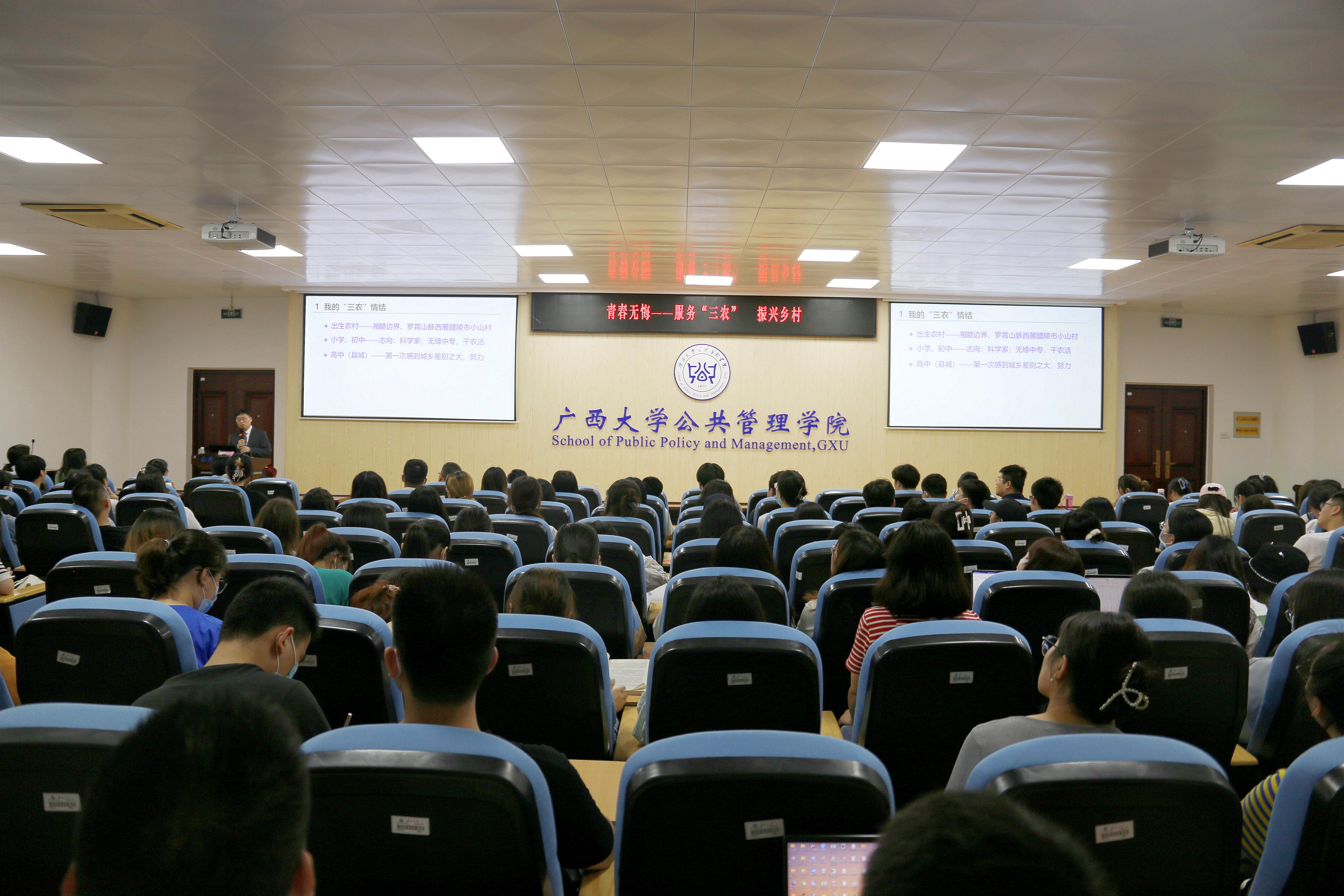 讲座内容分为四个部分:三农情结的萌芽,研究工作转向三农,用实际行动服务三农,及科技扶贫惠八桂。龙花楼教授回忆起自己的经历,从一个穷困的湘赣交界的小乡村一步步走到北京和奥地利、从一个师范生成长为一位长江学者的人生际遇,鼓励大家要励志勤学、刻苦磨炼,以青春之小我融入祖国之大我,平凡而不平庸,有责任、有担当,青春才会闪光。龙花楼教授以为什么我的眼里常含泪水,因为我对这片土地爱得深沉作为本次讲座的结语,他表示,他深深热爱着祖国大地,热爱研究八桂大地的三农问题,愿意为祖国的乡村振兴奉献自己的力量。最后,龙花楼教授给同学们送上寄语心怀国之大者爱你所爱,行你所行,听从你心,无悔青春
