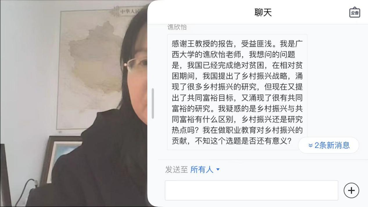 最后,王教授与参与讲座的师生开展了线上互动,详细解答师生提出的问题。魏副院长对王教授的精彩讲座致以诚挚的感谢,并邀请王教授到太阳城网址 与西大的师生做面对面的交流。本次学术讲座让师生们更加了解国内外的贫困研究状况,激发了老师们申请国家社科基金的热情,引起了同学们对我国贫困问题的思考和重视,增强了大家的民族使命感和爱国情怀。