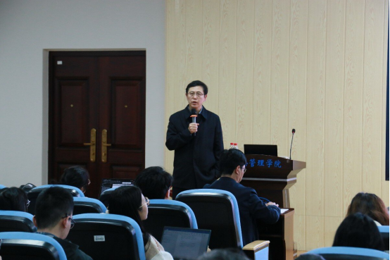 在师生互动环节,孙教授对学生提出的有关分布分散、人口密度小的区域企业不愿意进入管理的问题进行耐心解答。他从当地政府的态度、企业能够获得的样本数、企业可以获得的预期收入以及政府是否有新规划等方面详细介绍了企业进入的影响因素,与会师生纷纷表示赞同。