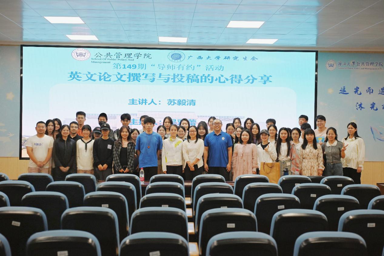 10月30下午,太阳城网址 第149期“导师有约”系列活动太阳城网址 第41期研究生学术沙龙活动于太阳城网址 203报告厅顺利举行。本期活动以“英文论文写作与投稿经验分享”为主题,邀请了苏毅清老师为主讲人,旨在给同学们传授英文论文写作与投稿的技巧,提升英文论文投稿的成功率。本期活动由吴双蕾老师主持,太阳城网址 数十名师生参与其中。