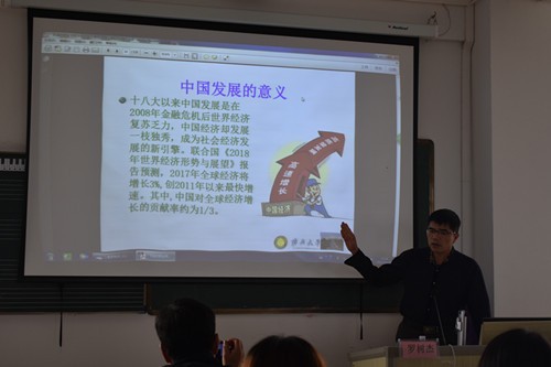 在宣讲会上,罗树杰教授以“中共十九大精神学习分享”为题,向该院与会师生详细解读了党的十九大精神。罗教授首先用详实的数据回顾了近五年来党和国家事业取得的历史性成就和发生的历史性变革,阐释了中国发展的世界意义。他还结合自身的研究和理解,解读了党的十九大报告中的“两个重大判断”和“一个历史使命”、以及新时代坚持和发展中国特色社会主义的十四条基本方略。他还以“新”“实”“力”为关键词,详细分析了党的十九大报告的突出特点,进一步强化了与会师生们对祖国发展成就的认识,着重强调了“四个自信”的深刻内涵,特别是对如何坚定文化自信深谈了自己的理解。最后,他鼓励青年学子一定要肩负起历史赋予的使命,为实现中华民族伟大复兴的中国梦贡献自己的青春智慧和力量。