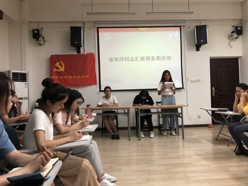 而后,支部进行了支委换届的选举发言。陈茜,符敏敏、谢秋萍、许蓝雪四位同志进行了竞选发言,四位同志对于支部建设都有自己的创新和见解。即将卸任的三位支委也对竞选的四名同志提出了要求和寄语,希望她们可以将本科第三党支部建设的越来越好。