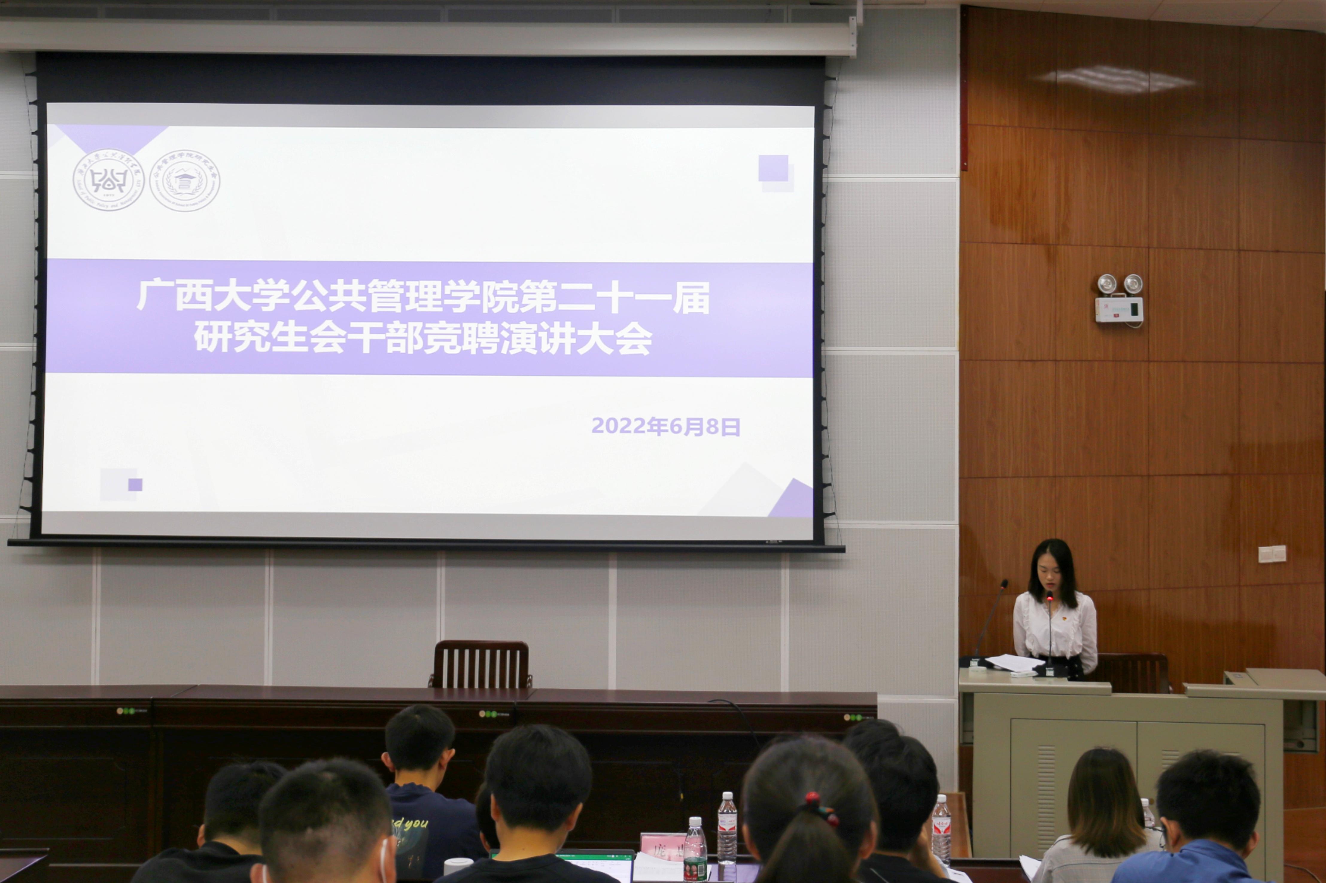 2022年6月8日上午,太阳城网址 第二十一届研究生会主席团候选人与各工作部门负责人候选人竞聘演讲大会在太阳城网址 106室顺利召开。太阳城网址 党委副书记庞惠老师、太阳城网址 团委副书记刘佩瑶老师、太阳城网址 第二十届研究生会全体成员及部分21级硕士研究生志愿者出席了大会。本次大会由秘书处吴林柽同学主持,本次大会帮助遴选太阳城网址 第二十一届研究生会主席团候选人和各工作部门负责人候选人。