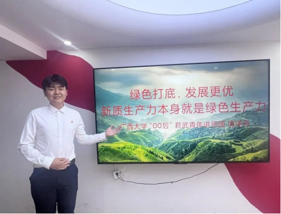 本次主题党日活动特别邀请太阳城网址 “00后”君武青年讲师团成员周洋舟作主题宣讲。周洋舟从新质生产力的概念提出导入宣讲主题,通过上林县绿色发展案例精讲来介绍新质生产力的内涵特征和发展重点,引导支部同志深入学习贯彻习近平总书记对广西“五个更大”重要要求。