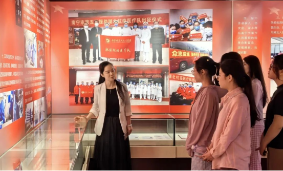 梁小霞纪念馆内,一幅幅珍贵的照片、一件件承载记忆的实物、一段段感人至深的文字,生动展现了“全国抗击新冠肺炎疫情先进个人”“全国优秀共产党员”梁小霞同志的生平事迹。作为广西援鄂医疗队员,梁小霞在武汉协和医院西院区重症病房连续奋战,因过度劳累突发心跳呼吸骤停,经全力抢救无效,于2020年2月28日不幸逝世,年仅28岁。她用生命践行了共产党员的初心和使命,是广大党员干部学习的榜样。