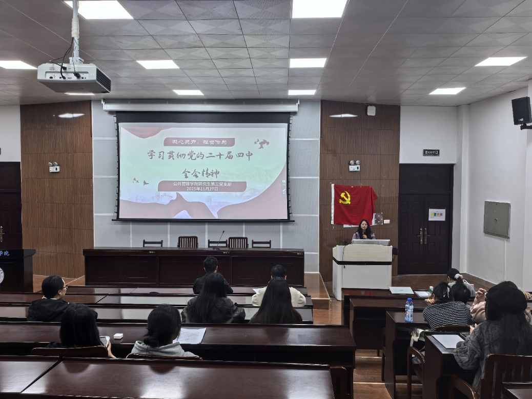 活动伊始,支部书记刘秋萍同志率先开展专题领学。她围绕党的二十届四中全会审议通过的《中共中央关于制定国民经济和社会发展第十五个五年规划的建议》,从“高质量发展的核心要求”“青年一代的使命担当”等维度,深入浅出解读了全会精神的丰富内涵与实践要求。