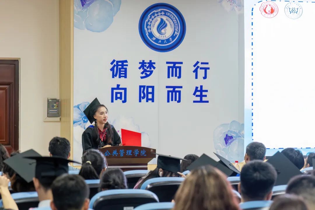 基于高度复杂和高度不确定的时代,史云贵指出开拓可能性远比探求确定性更加重要。临别之际,他给予毕业生们三点期盼,希望大家学会在不确定中,拥抱不确定性,为自己创造可能,并努力把可能变为现实。要拥有梦想,敢于有梦,创造可能。作为公管学子,要心怀梦想,坚守初心使命,胸怀“国之大者”,心系“民之所向”,自觉把个人的理想追求融入国家和民族的事业中,用中国梦激扬青春梦,让绚丽多彩的青春之花在中华大地上绽放。要不断学习,勤于追梦,拥抱可能。养成和坚持终身学习的习惯,不断地提升自己的专业能力和认知水平,持续地去拓展自己的认知边界和思维格局,努力做到与知识更迭同步伐,与时代发展共脉动。梦想从学习开始,让勤奋学习成为青春远航的动力。要持续奋斗,勇于圆梦,实现可能。奋斗出幸福,实干向未来。成功靠的是日夜拼搏,奋斗是成就所有可能的必由之路。“路虽远,行则将至;事虽难,做则必成”,脚踏实地的努力和坚忍不拔的奋斗成就出彩的人生。
