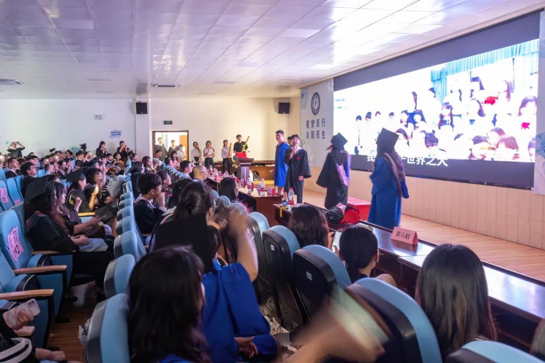 最后的串烧歌曲点燃了会场的气氛,毕业生们一起合唱歌曲,一首《我会等》“与你一起去看外面世界到底多大”等着一起去探索世界、共赴未来,一首《起风了》“仍感叹于世界之大”心动随风起,今日成就了独一无二的盛夏。一首《稻香》“为自己的人生涂上鲜艳的颜色”共同期盼着青春五彩斑斓的模样。一首《一路生花》“我希望许过的愿望一路生花”祝福所有毕业生前程似锦、心想事成。一首《再见》“我会珍惜你的思念”在这个流行离开的时代,能够带着美好回忆好好的道别。