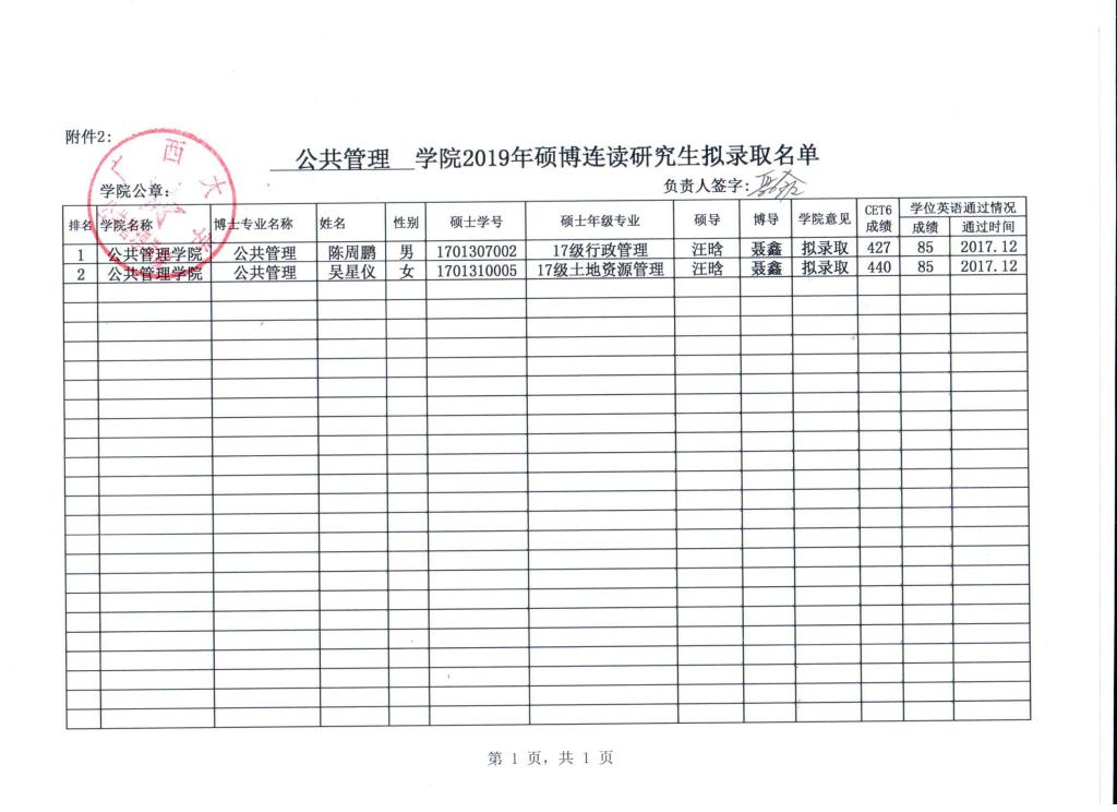 太阳城网址 2019年硕博连读研究生拟录取名单公示