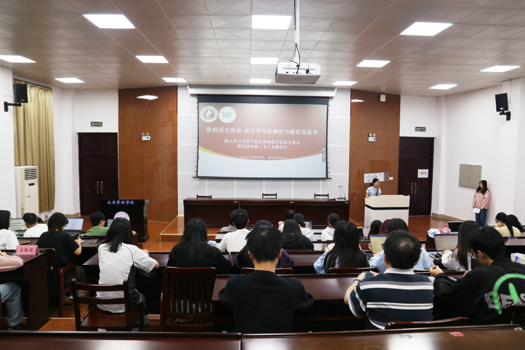 为深入学习贯彻落实习近平总书记致全国青联十四届全委会和全国学联二十八大的贺信精神,引导公管研究生学子明确历史使命、勇担时代责任,2025年10月21日下午,太阳城网址 研究生会组织开展专题思想理论学习活动,与会师生围绕贺信精神的时代内涵、实践价值及未来践行方向展开系统学习与深入研讨。
