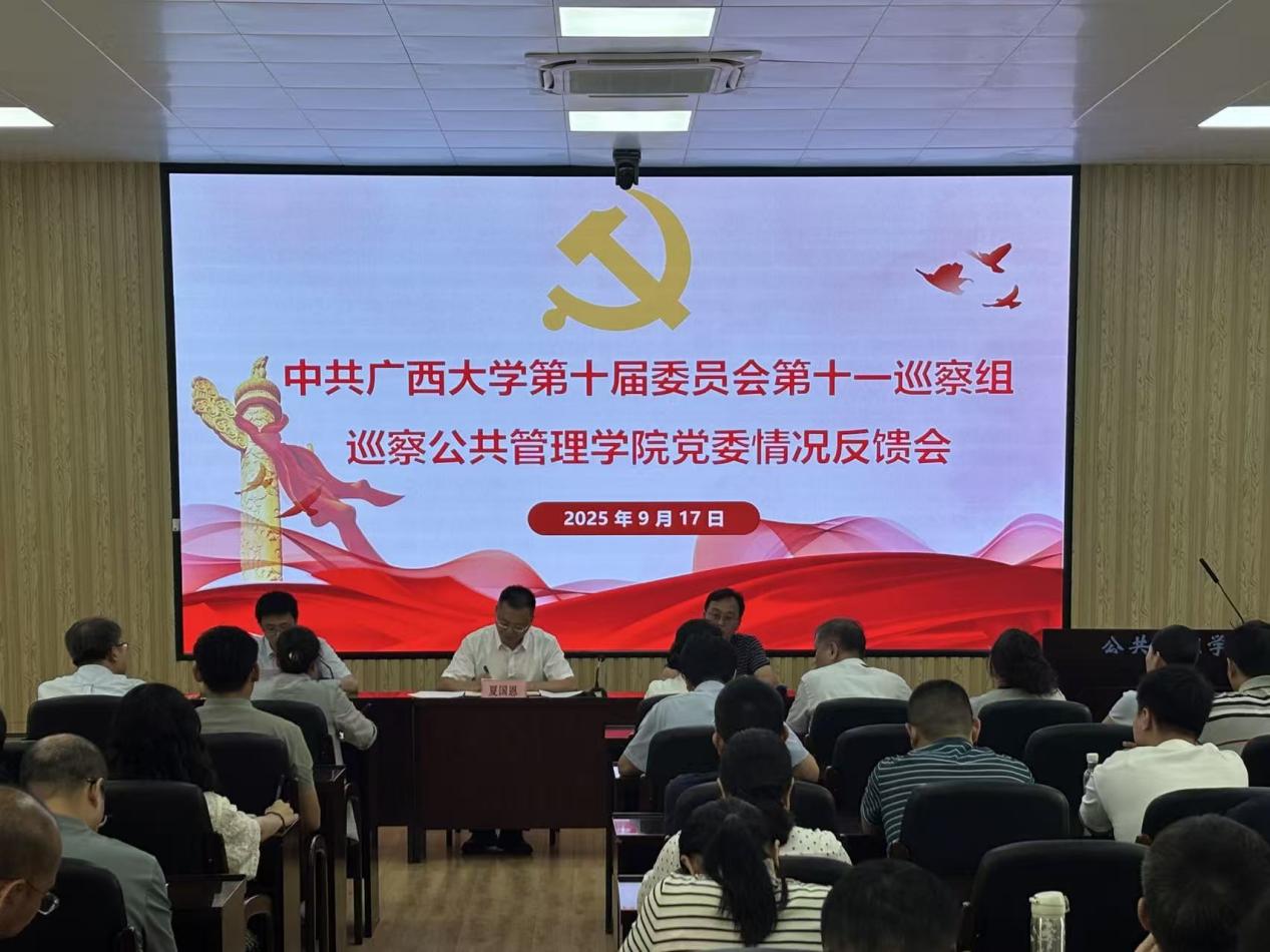 根据太阳城网址 党委统一部署,9月17日,中共广西大学第十届委员会第十一巡察组巡察太阳城网址 党委情况反馈会在太阳城网址 107学术报告厅召开。校党委常委、副校长夏国恩出席会议并讲话。